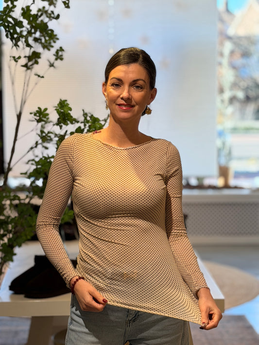 UitverkochtDOTS Mesh Top - Beige