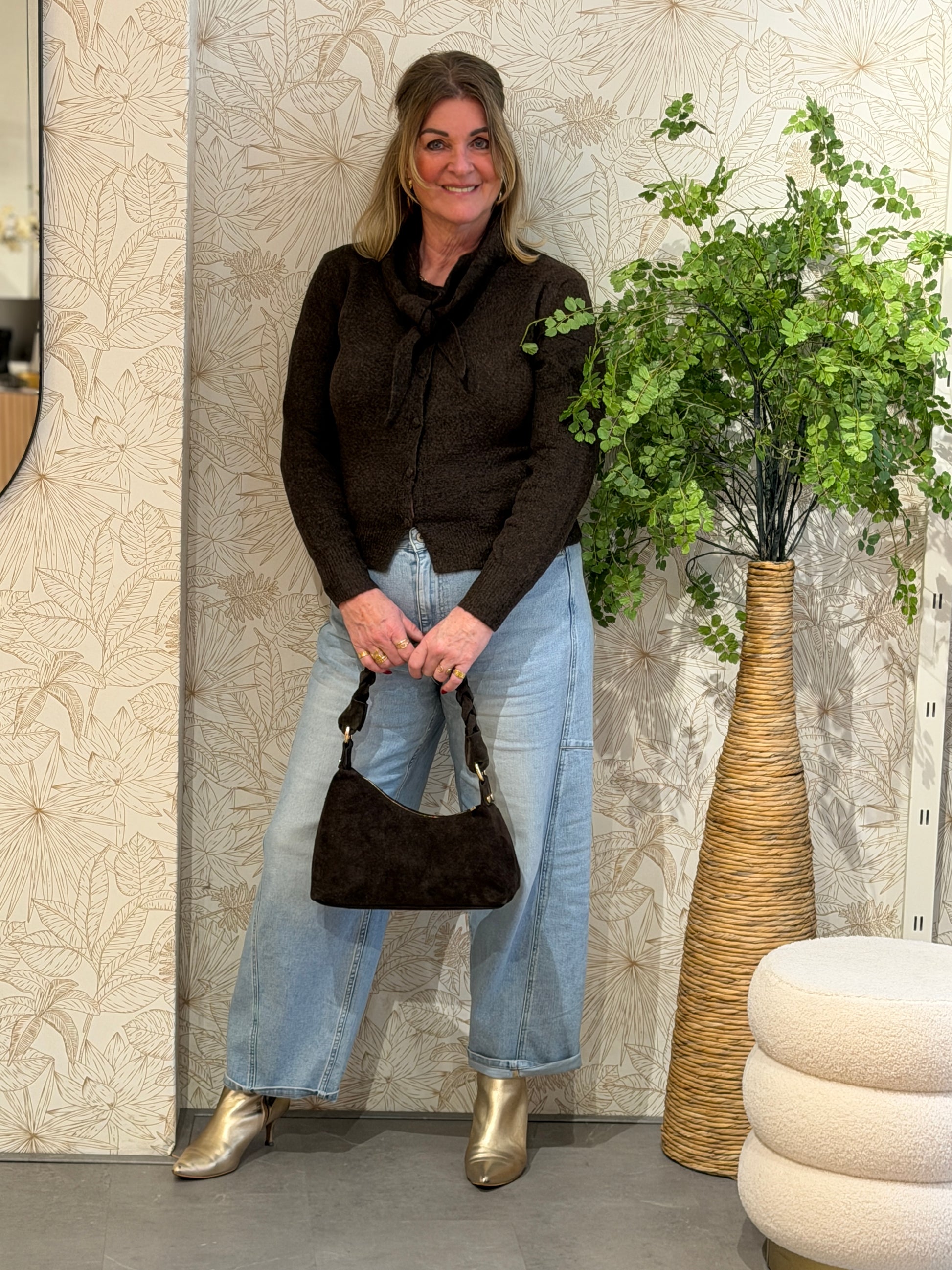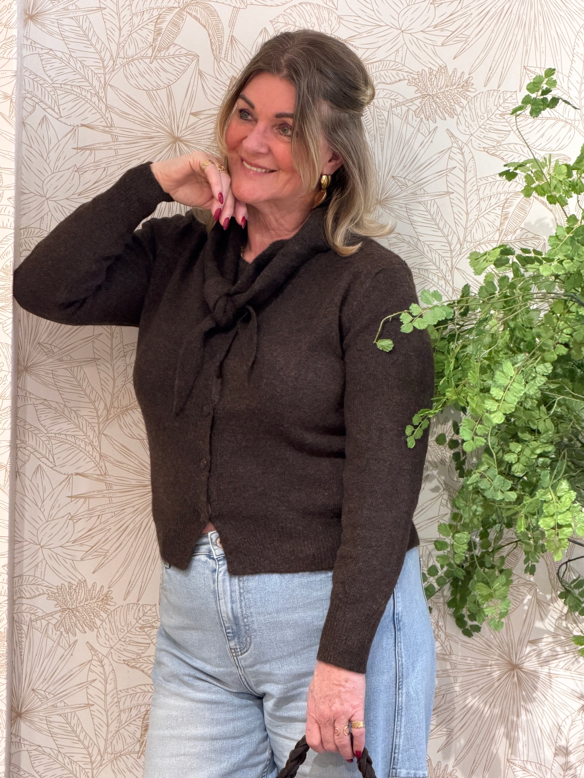 Mooi vest van heerlijke zachte stof en knoopjes aan de voorkant zodat je deze ook leuk als trui kunt dragen. Er zit een bijpassend sjaaltje bij.