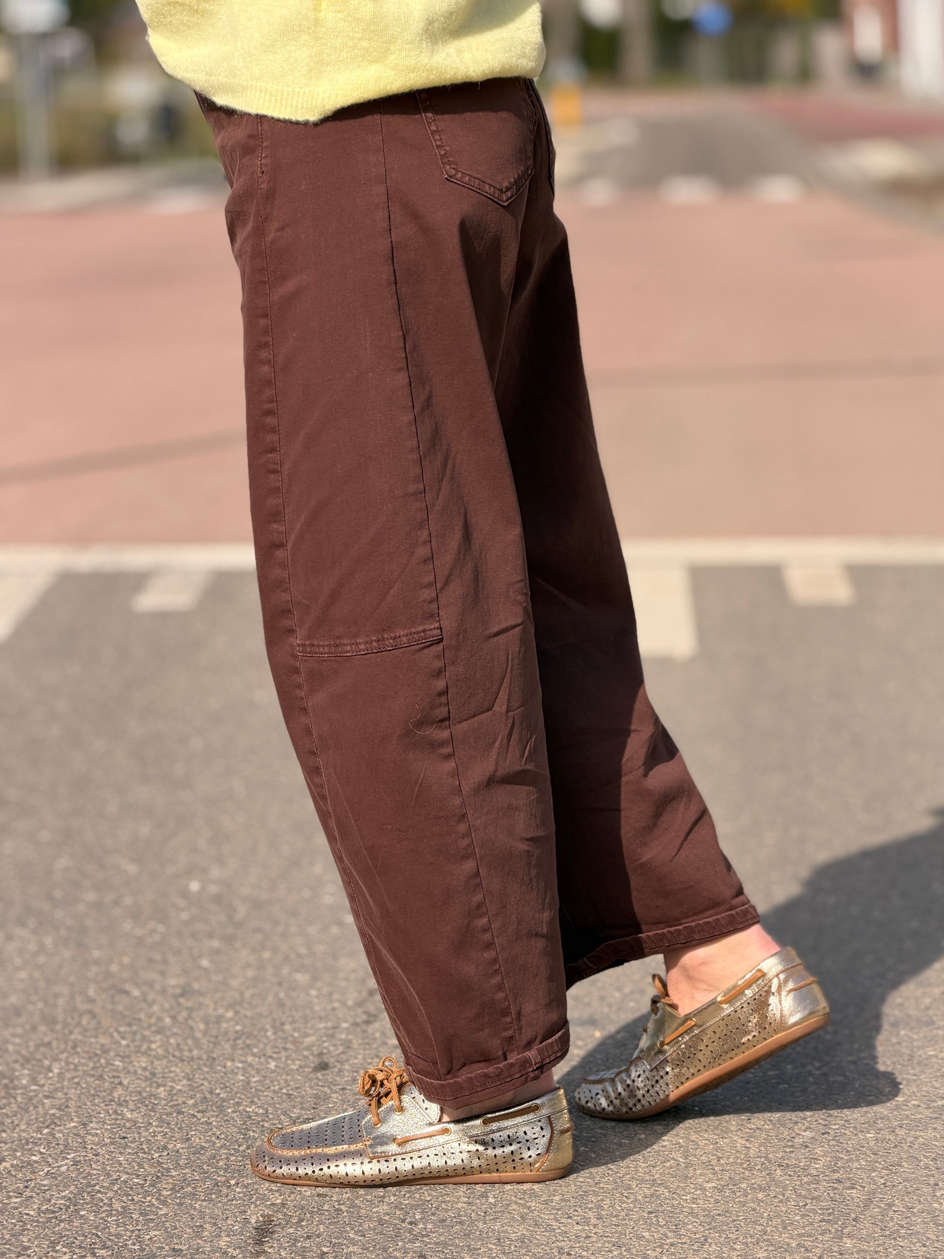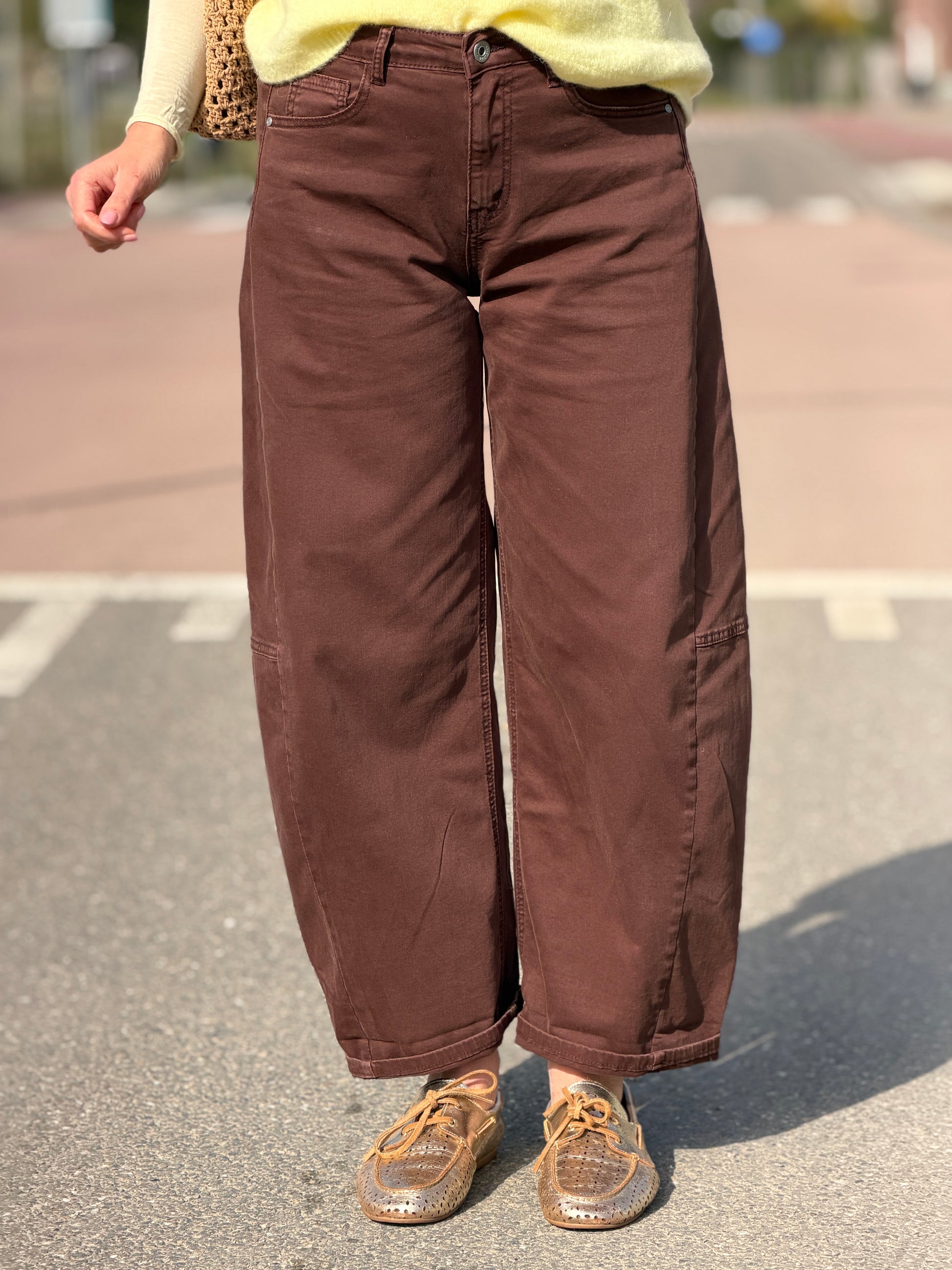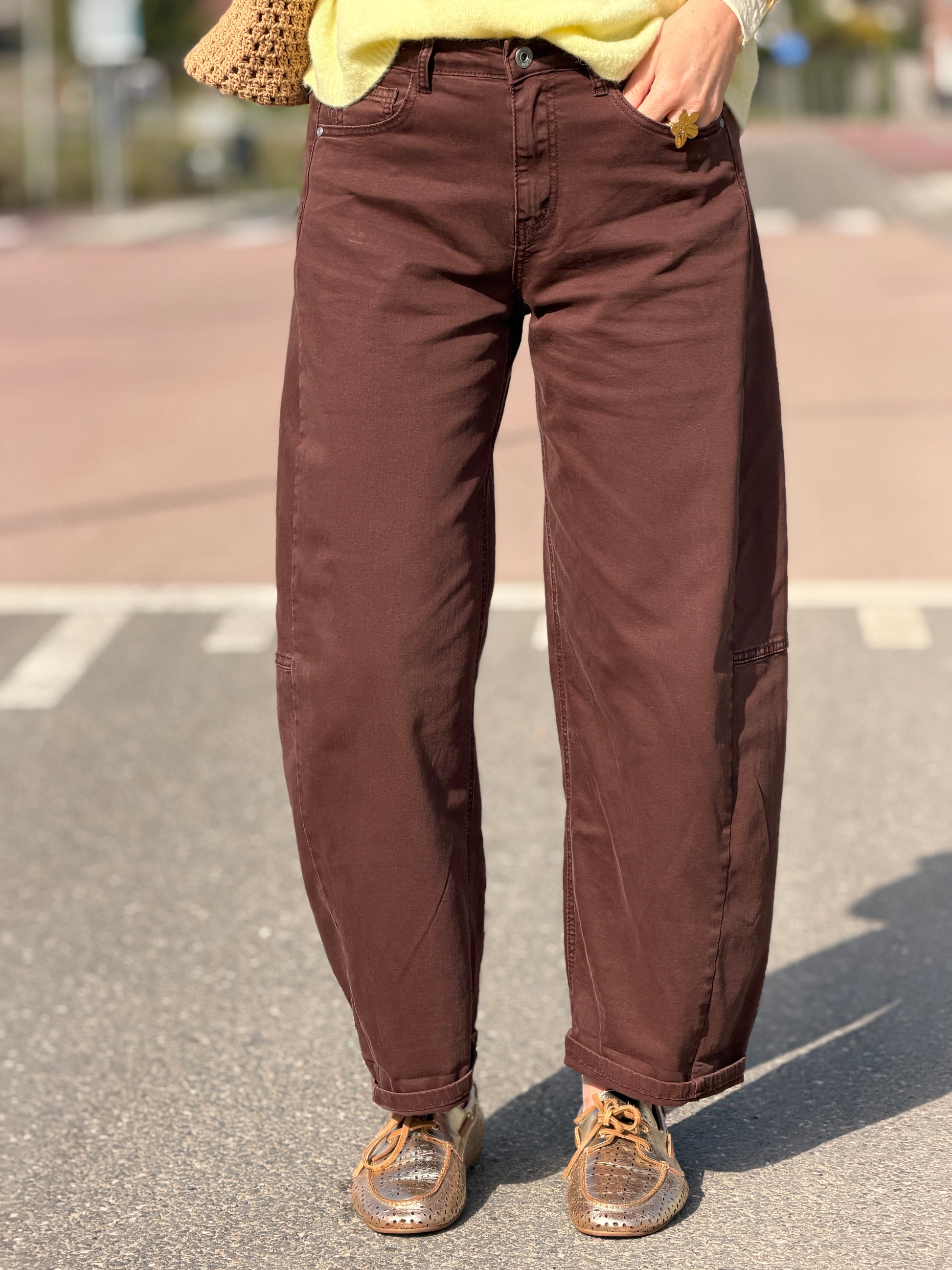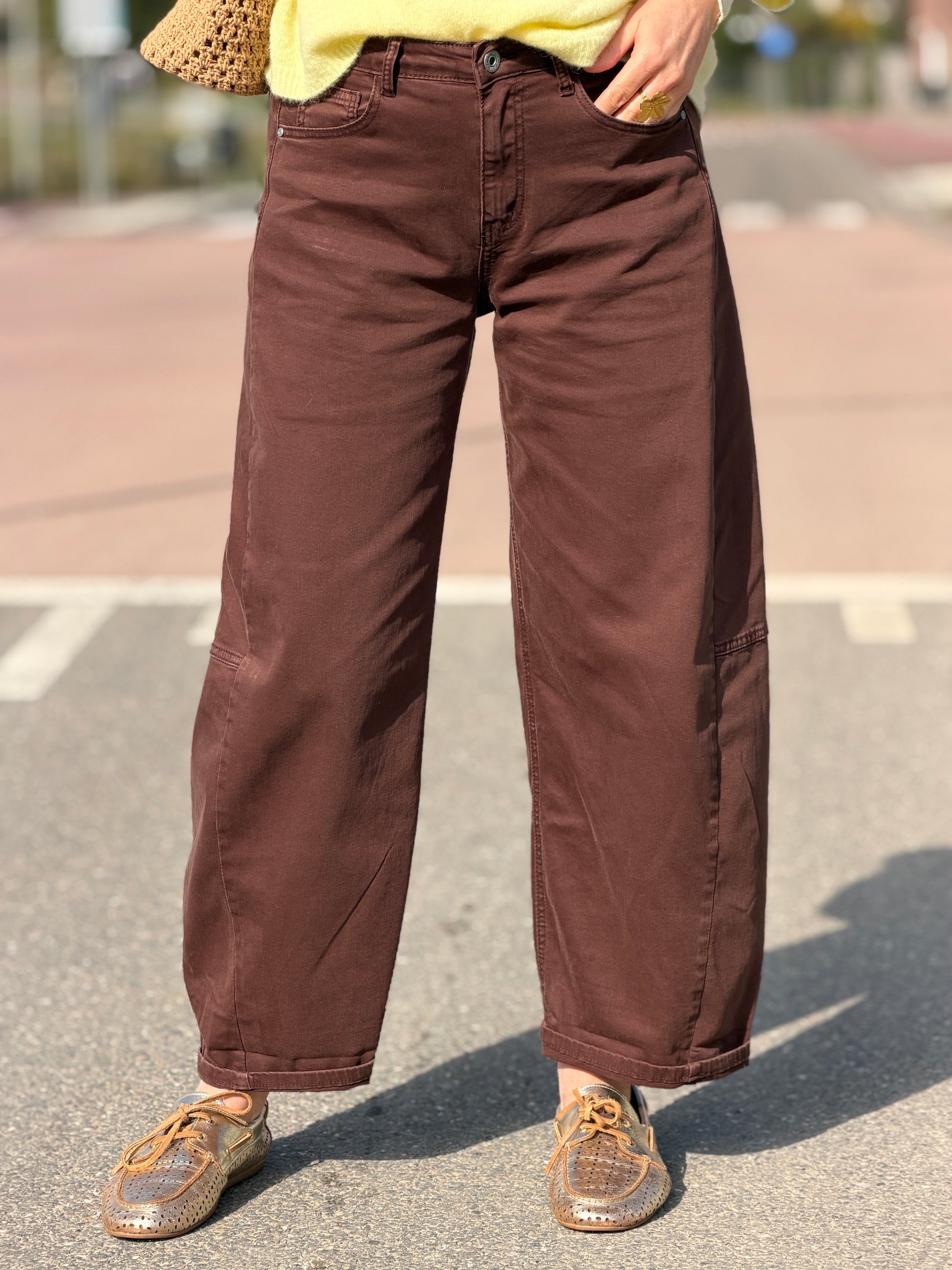 De trending balloon jeans nu ook in het geel bij ons verkrijgbaar! Hij is er in bruin grijs. wit en beige