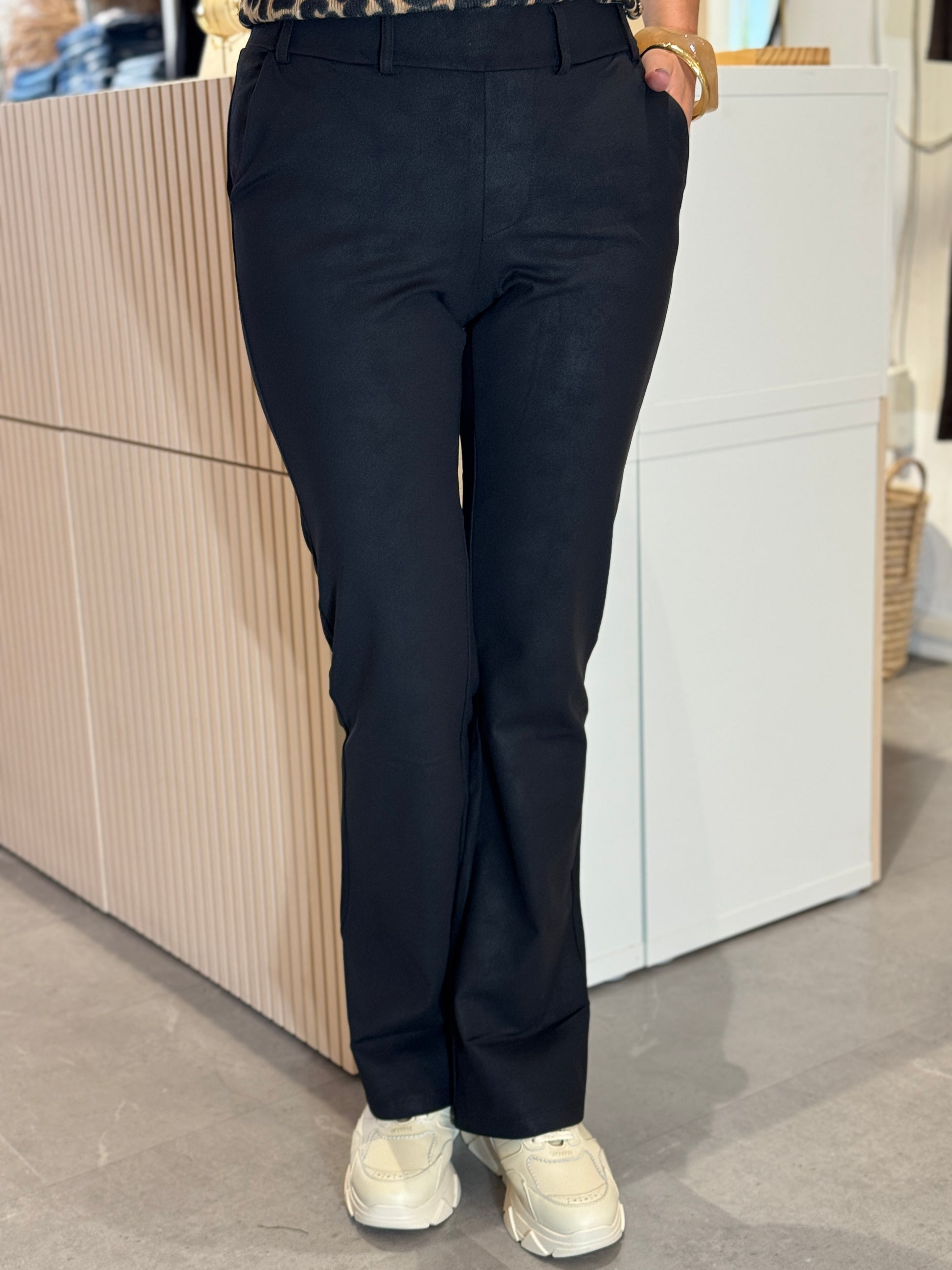 Die Phoenix-Hose ist eine gerade Hose, die unten leicht ausgestellt ist. Die Rückseite des Bundes ist rundherum mit Gummizug und Gürtelschlaufen versehen. Der Artikel hat Seitentaschen vorne und Paspeltaschen hinten.