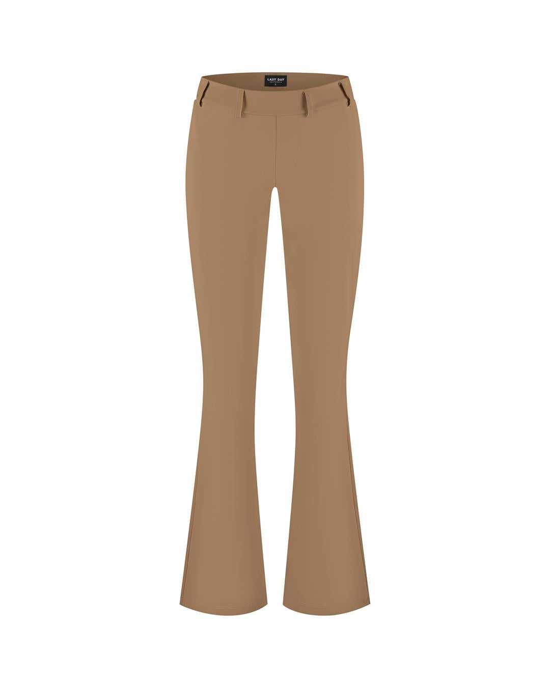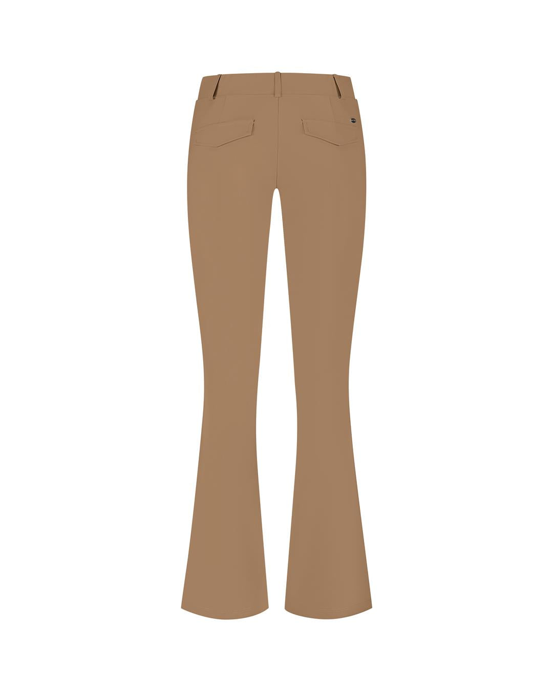 De broek Poppy is een flared model. De achterzijde van de tailleband is voorzien van elastiek en heeft rondom riemlussen. Het item heeft steekzakken voor en klepzakken achter. :