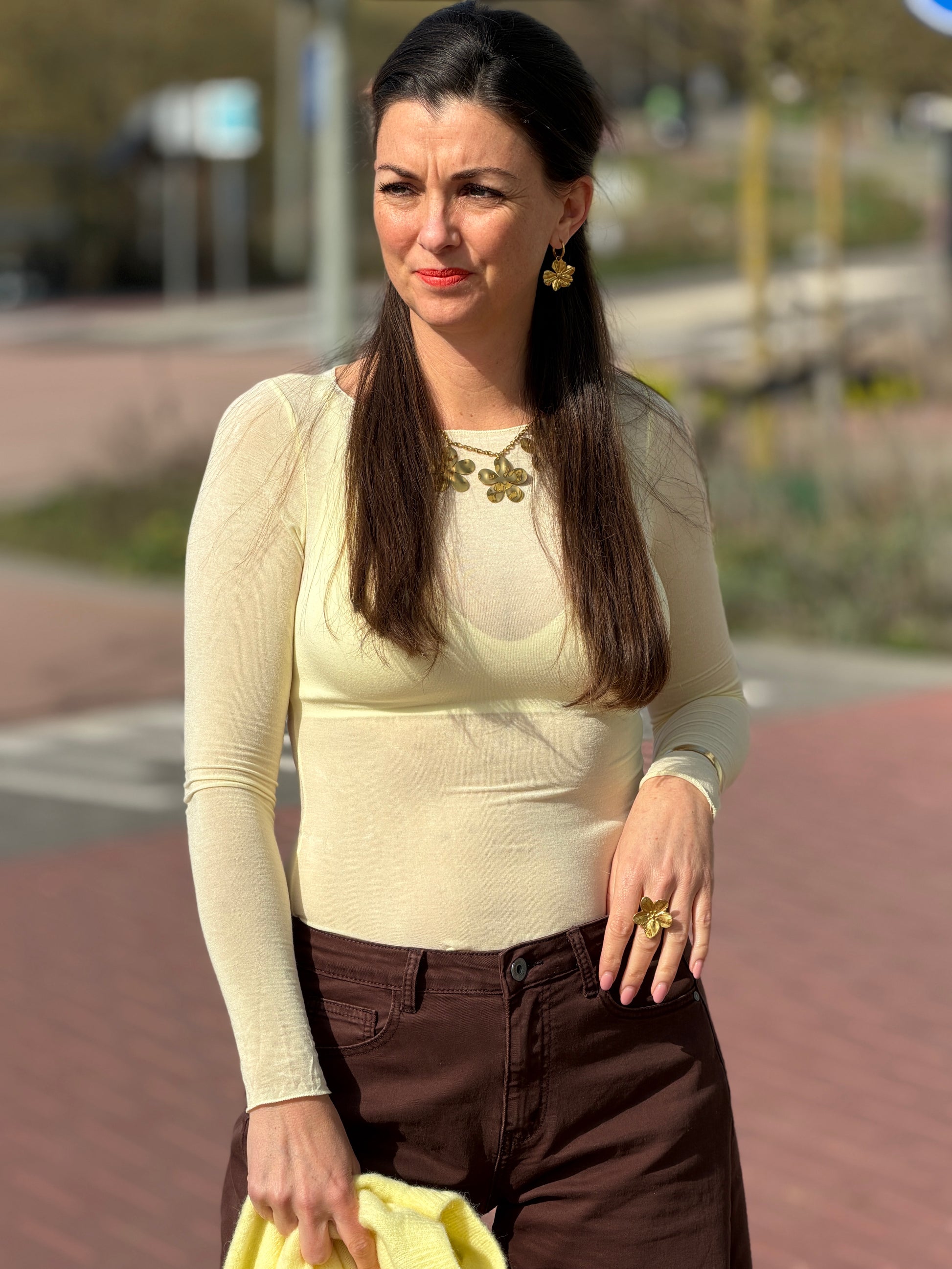 Een trendy, licht doorschijnende mesh top met een leuke dots print.