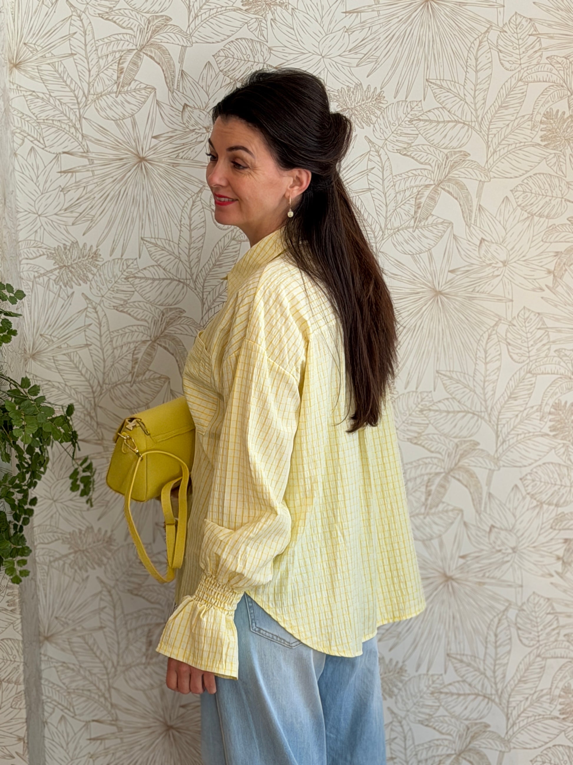 Super gave blouse met een geruit printje verwerkt en geweldige mouw!