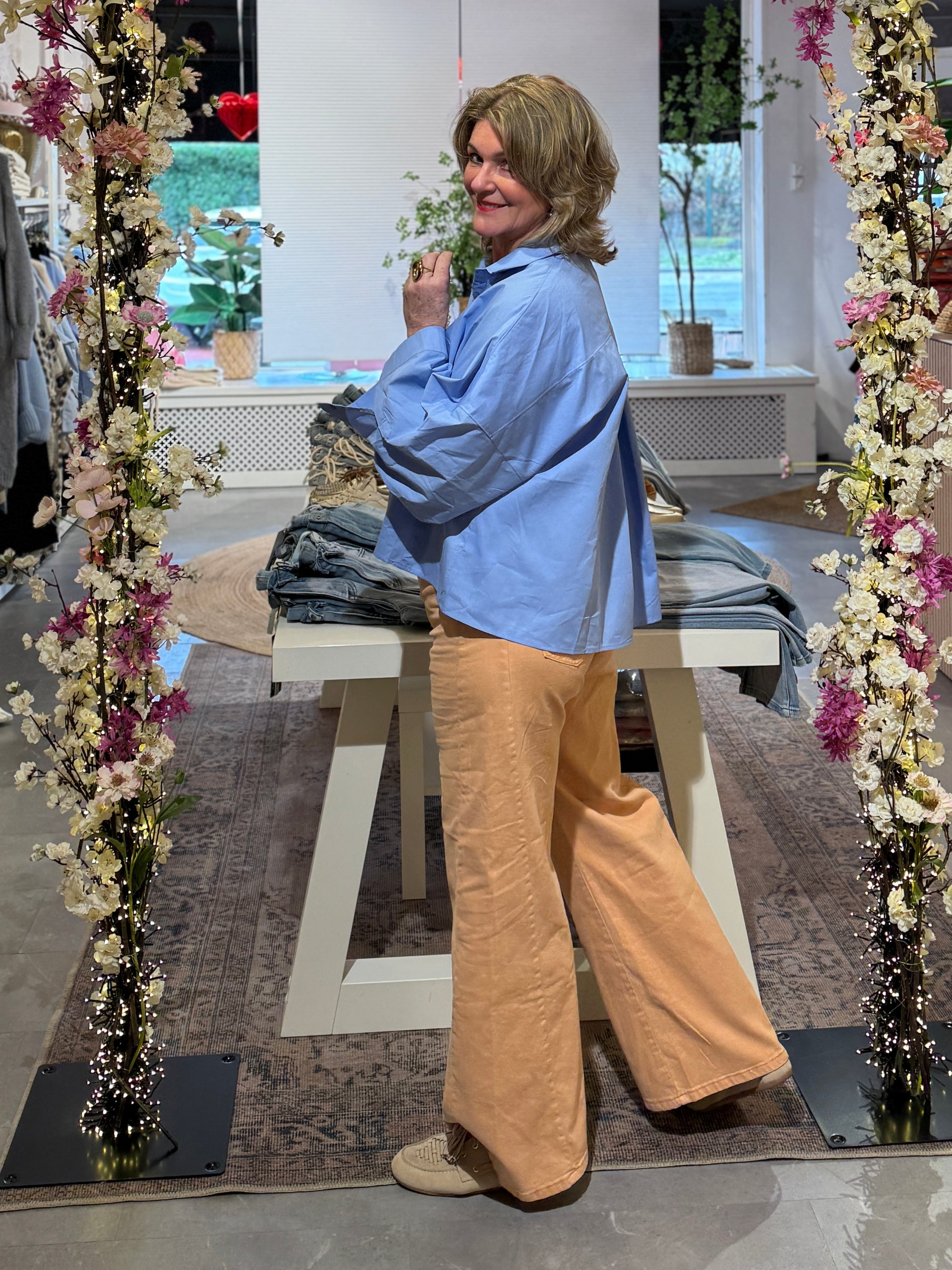 Deze katoenen oversized blouse heeft een wijde aangeknipte mouw. blouse loopt in een A lijn en is oversized.