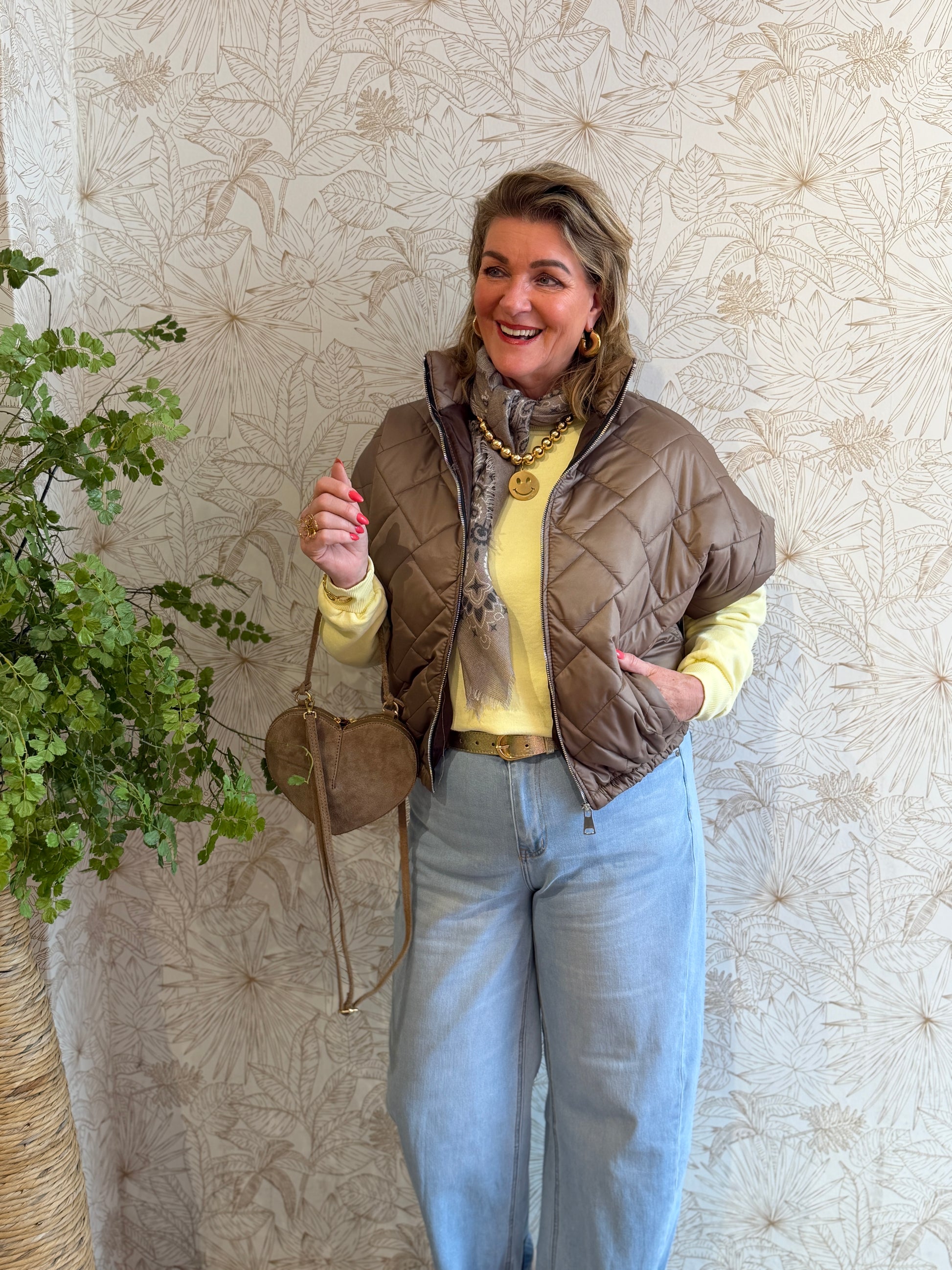 Een heerlijk bodywarmer die sluit dmv een rits.