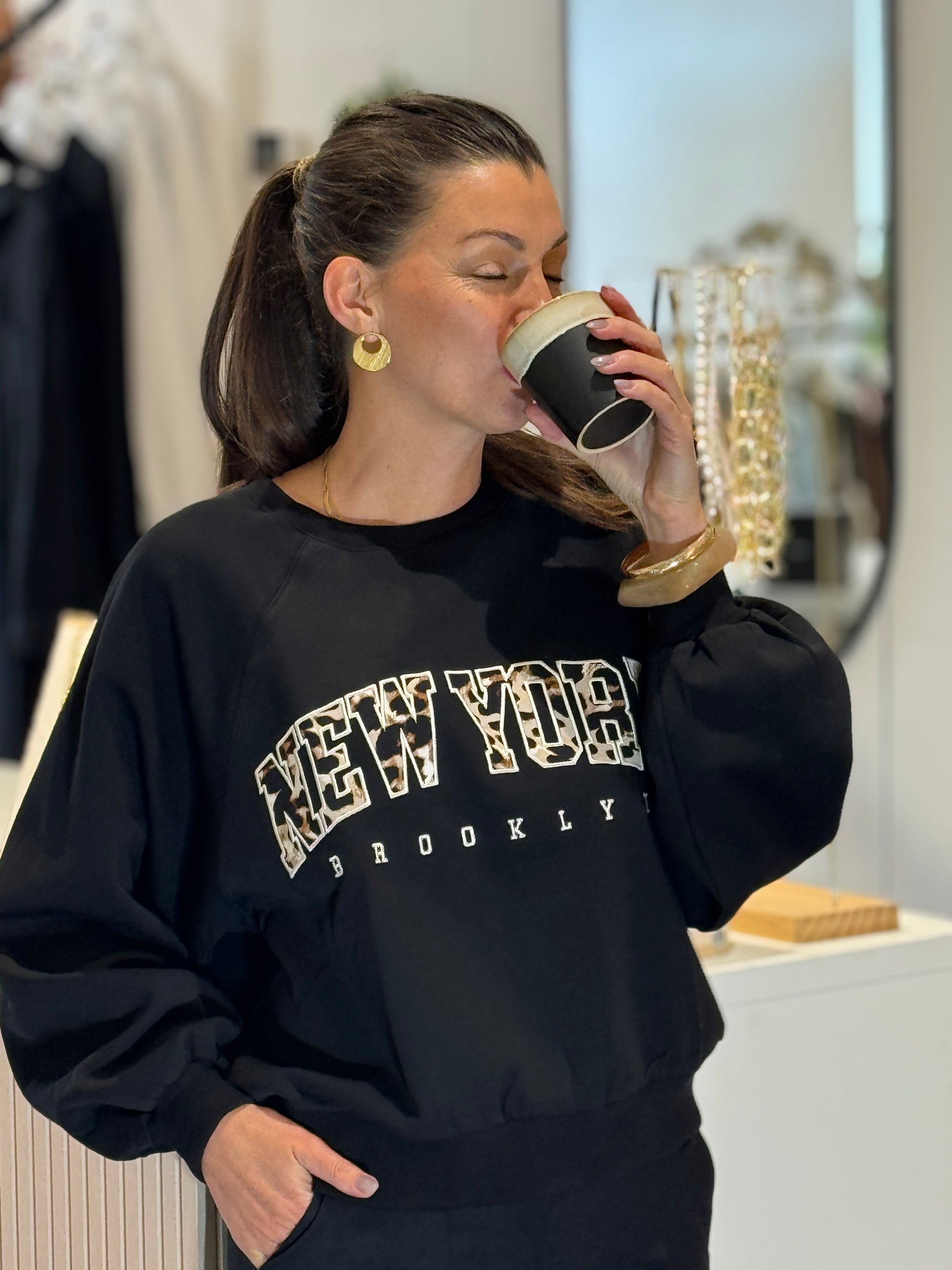 De Elora is een trui van Lady day met een wijde pasvorm en ronde hals. Het item heeft wijde mouwen met strak boord en is voorzien van een sportieve applicatie op de voorkant.