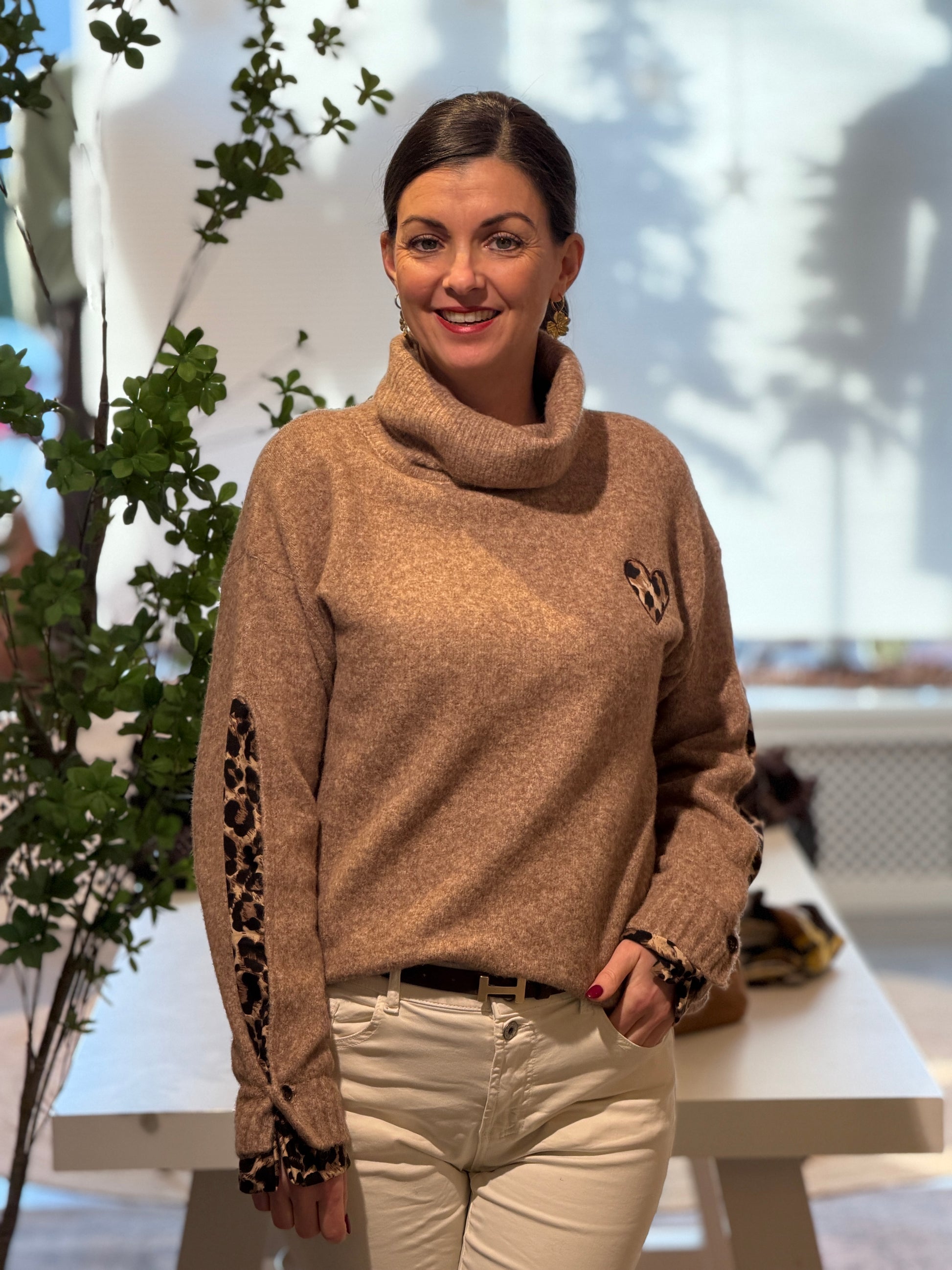 Leuke trui met zachte col en speels leopard details.