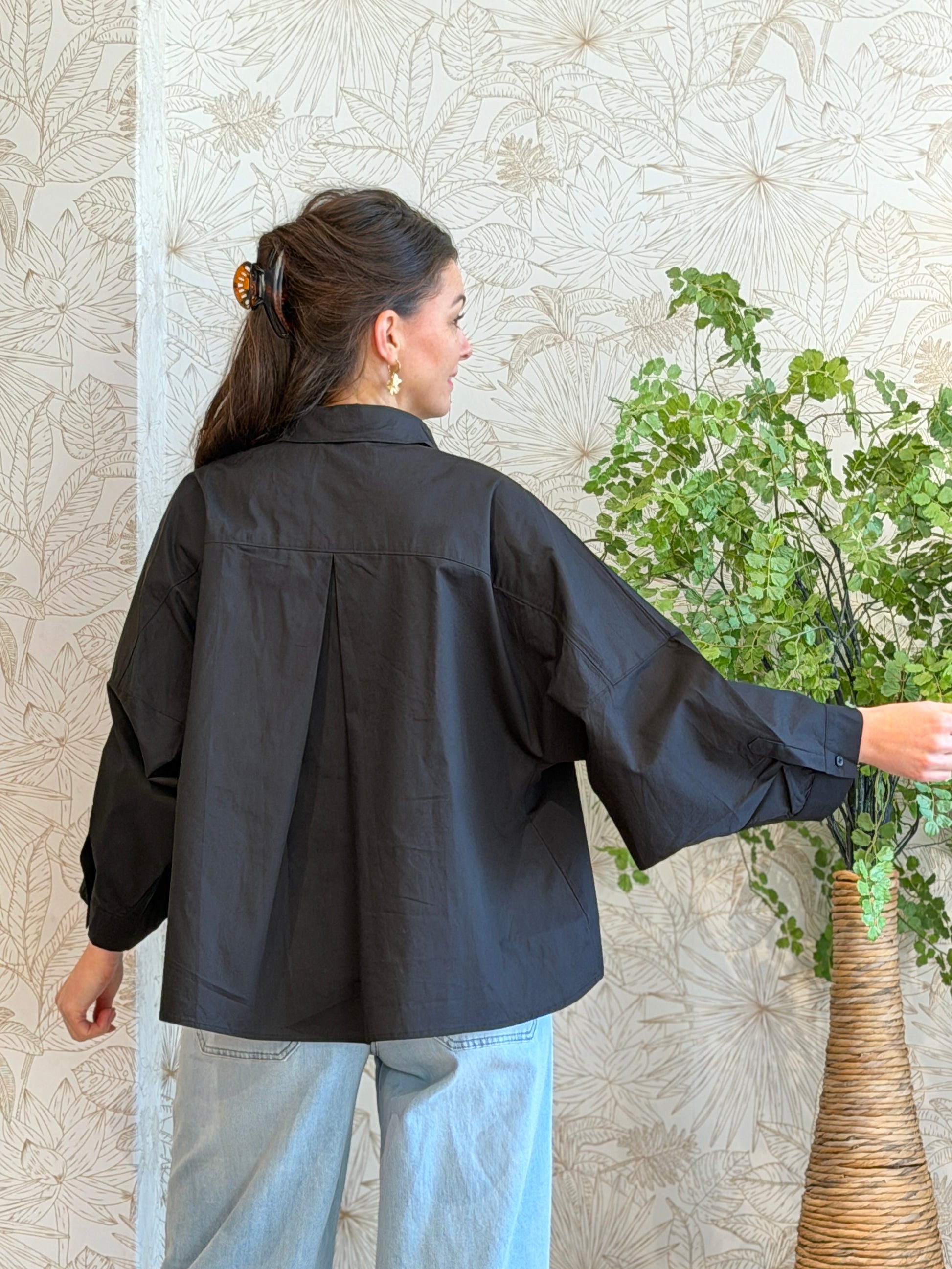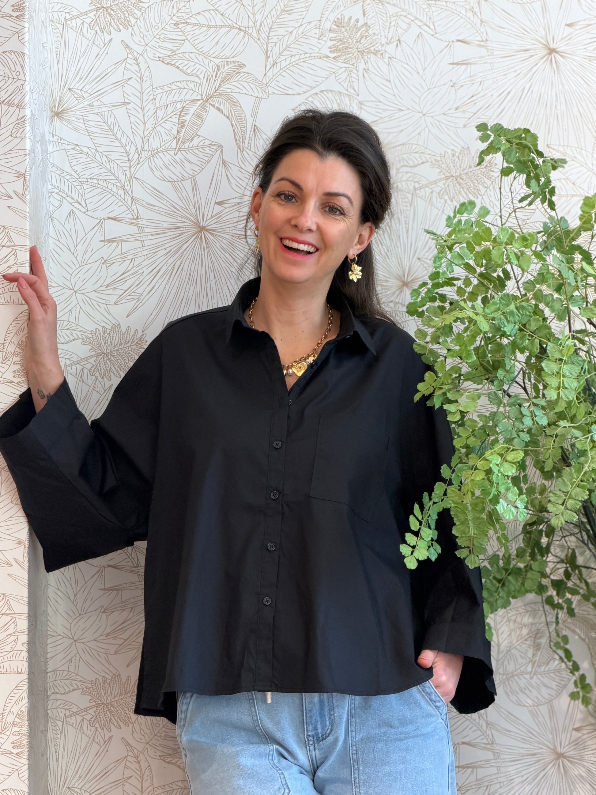 Deze katoenen oversized blouse heeft een wijde aangeknipte mouw. blouse loopt in een A lijn en is oversized.