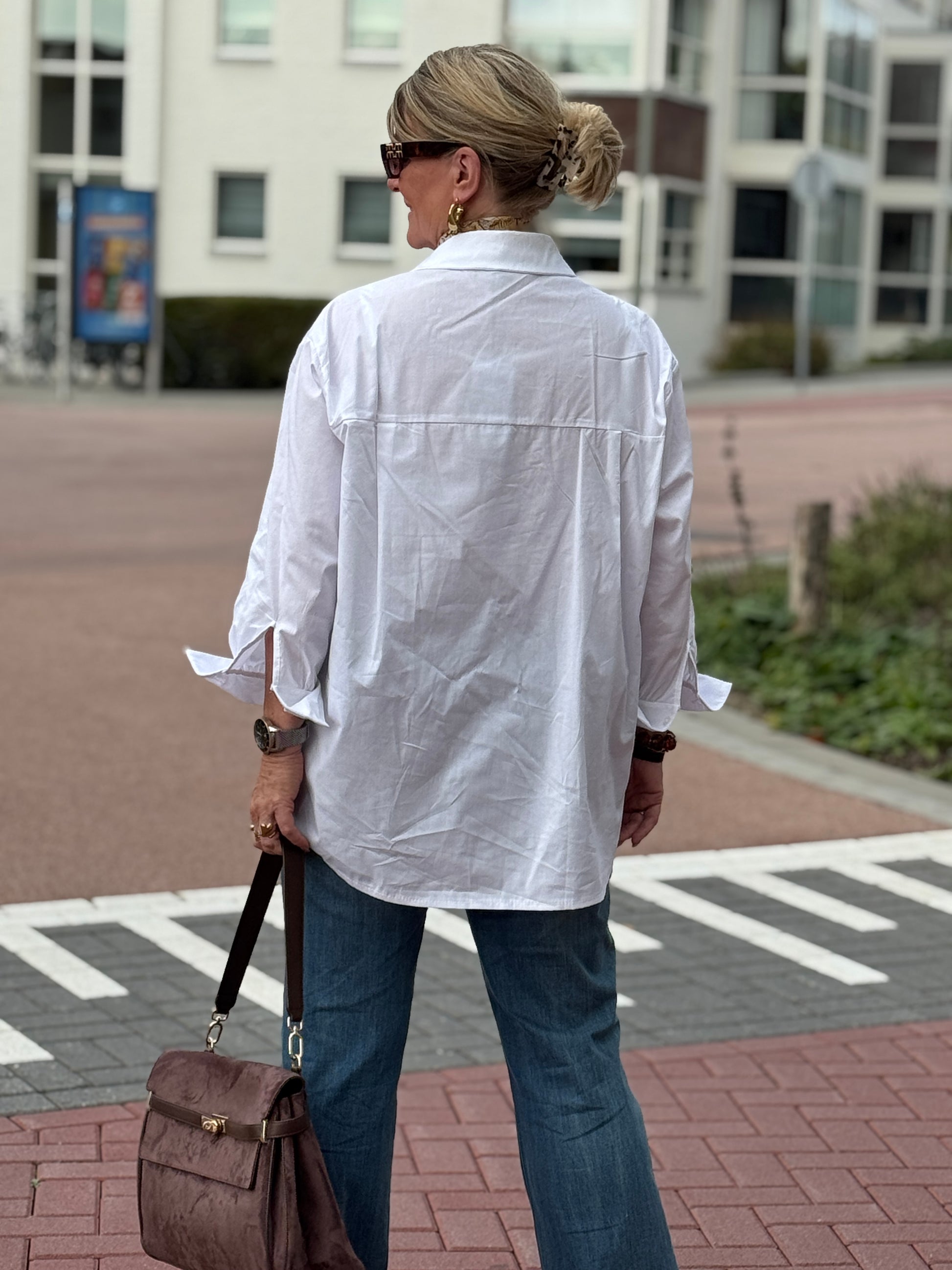 Basic blouse voor jaren plezier. Draag onder een colbert of trui.Blouse heeft een plooitje aan de achterzijde voor meer ruimte.