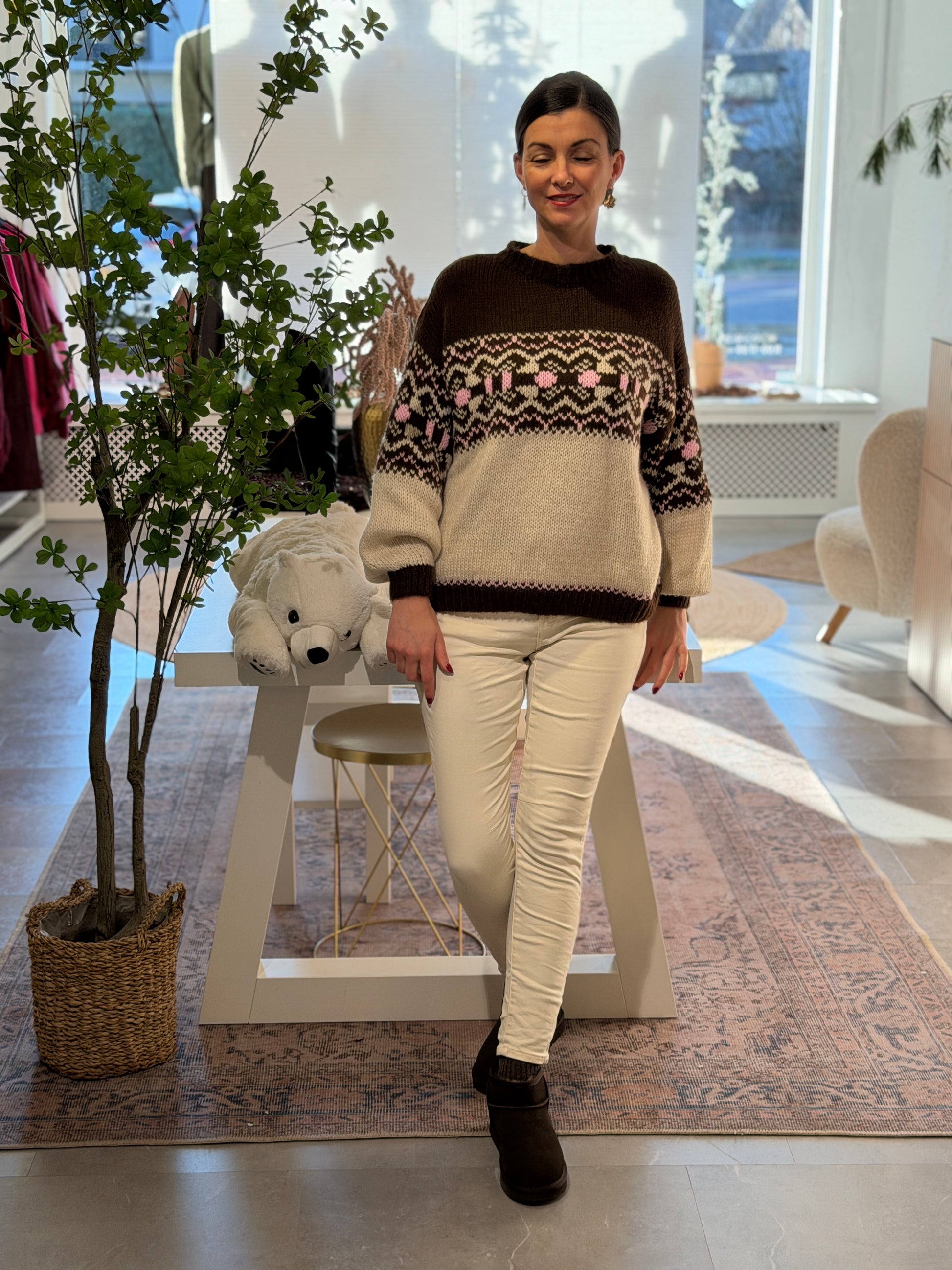 Voor de dames die toch niet kunnen wennen aan de wijde pijpen hebben wij ook gedacht. Een nauwsluitend broekje met stretch in een super mooie jeans kleur!