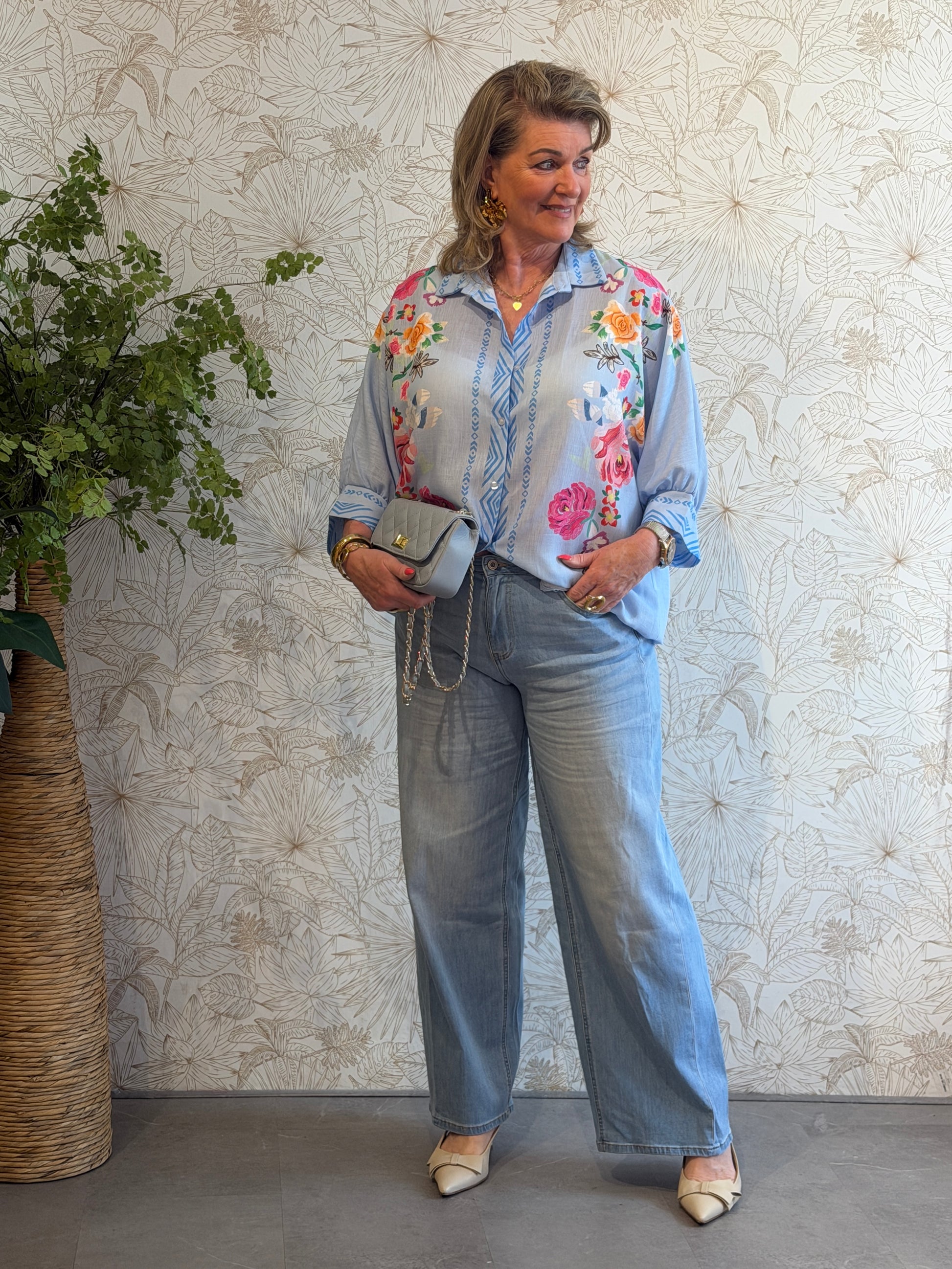 Gave oversized flower blouse met knoopjes aan de voorkant.