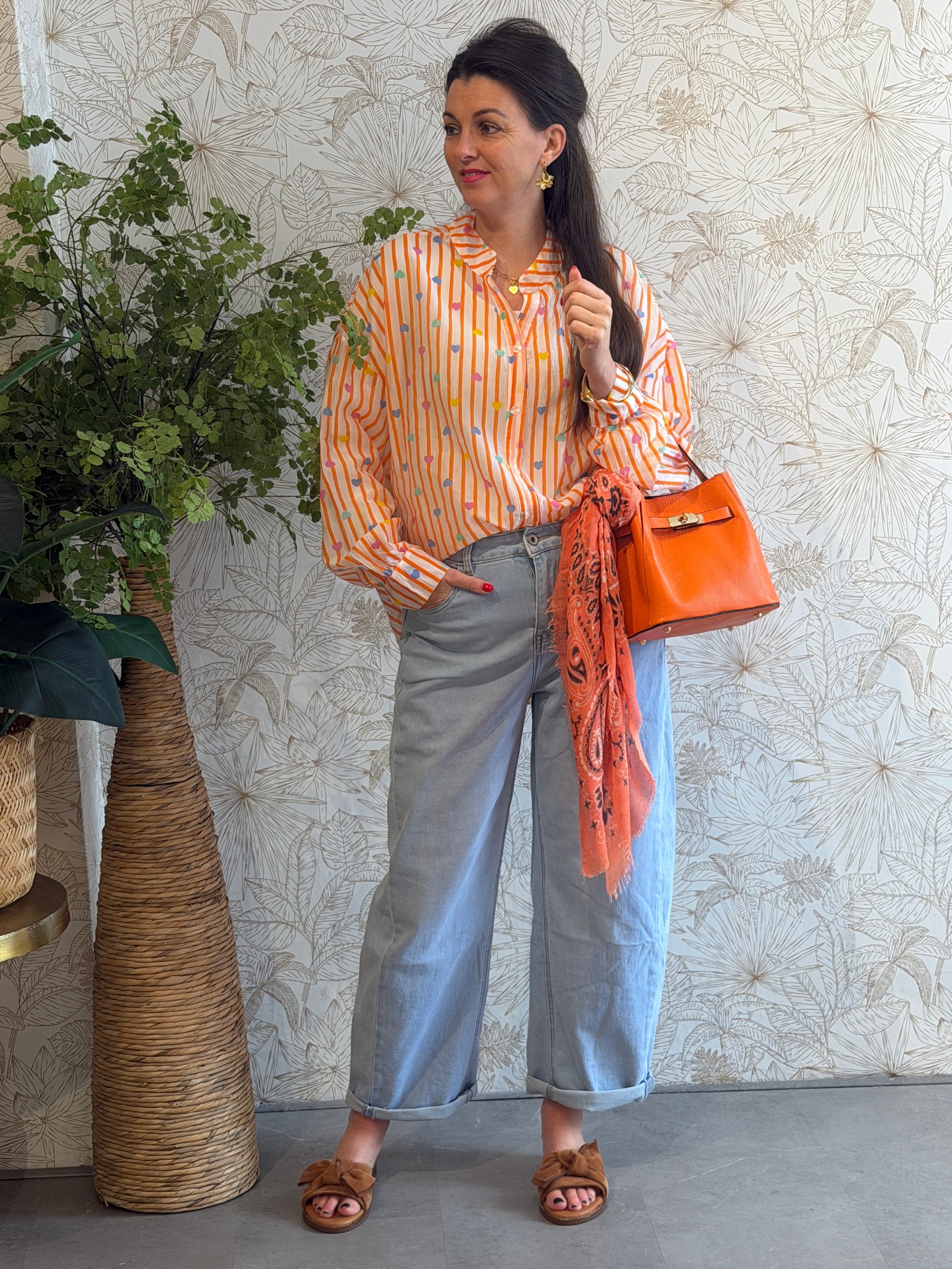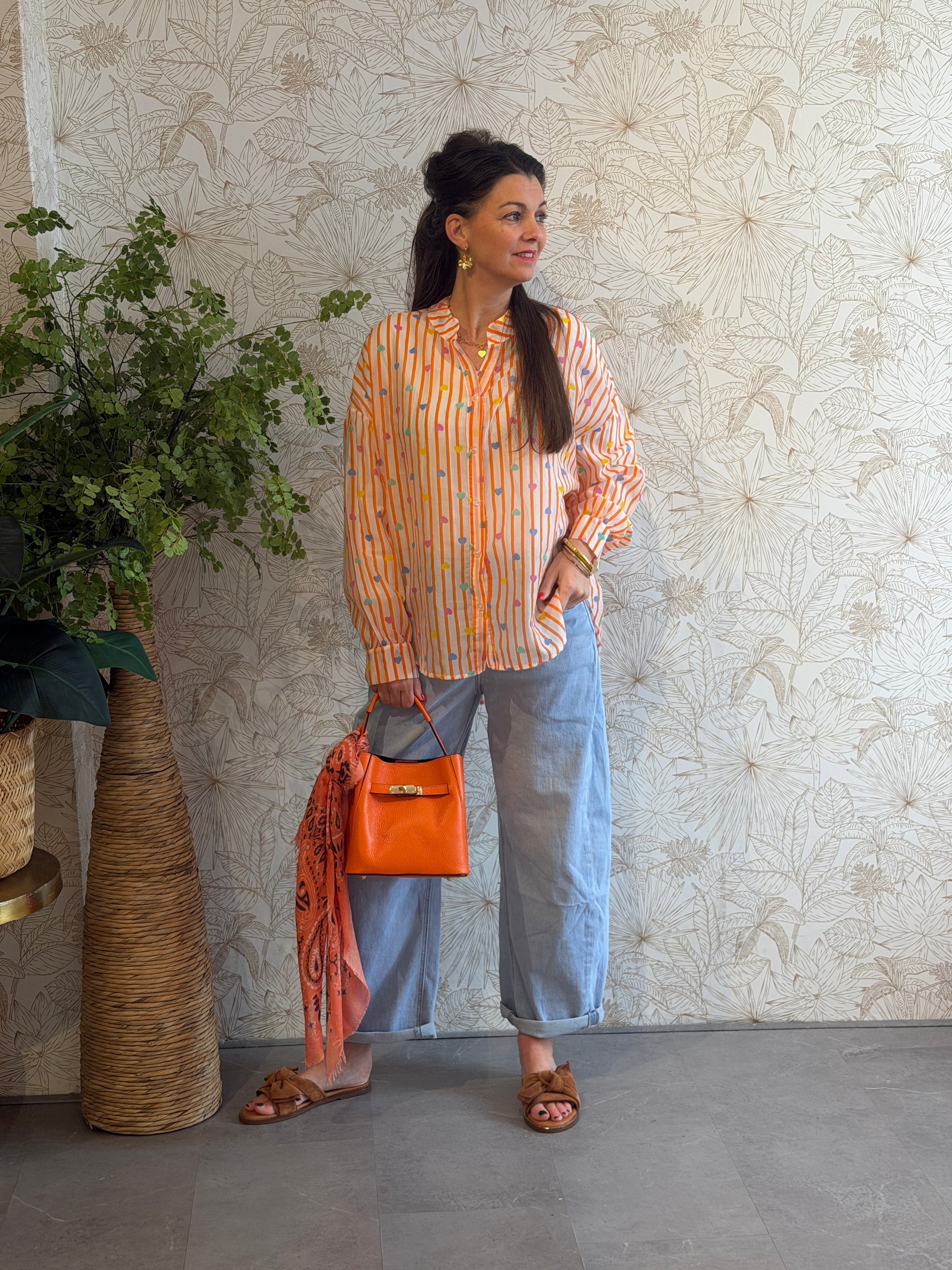 Leuke oversized blouse met hartjes print. De blouse is lekker luchtig en heeft knoopjes aan de voorkant.