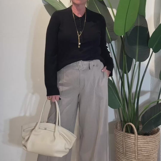 Prachtige pantalon broek met ceintuur. De broek heeft een heel fijn streepje erin verwerkt.