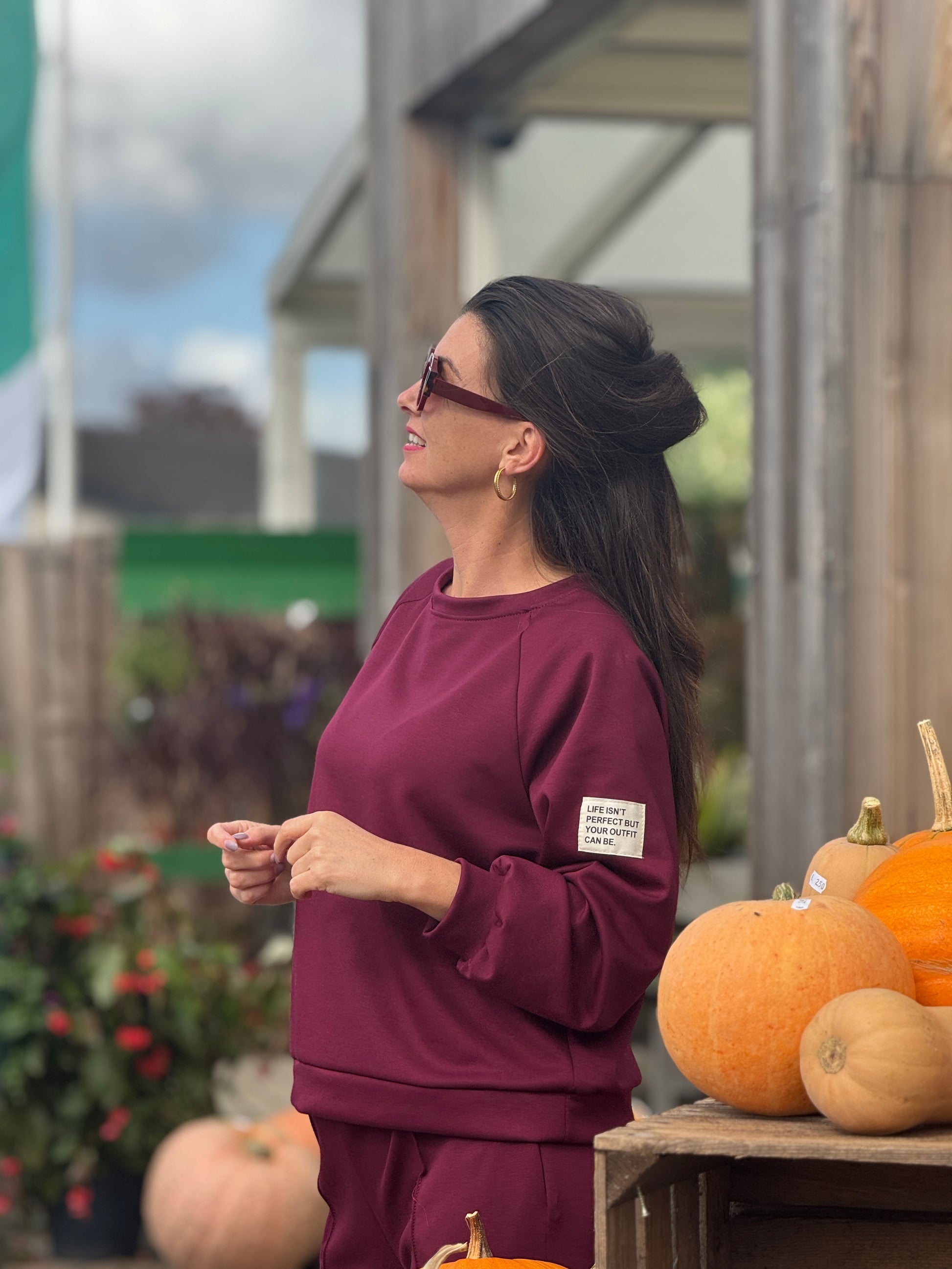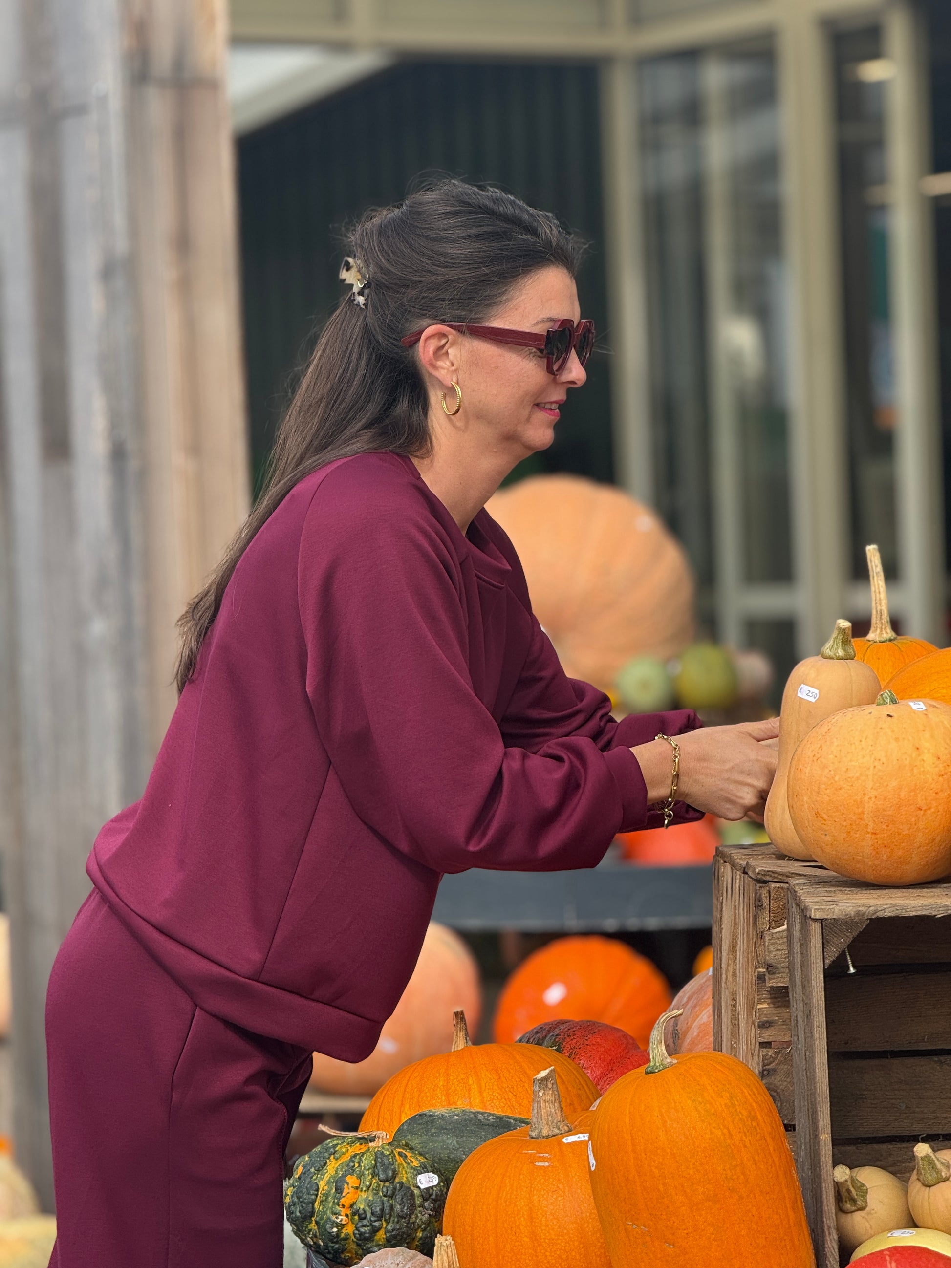 Heerlijk cosy pak met leuke details. De trui is lekker oversized en de broek is wide leg.