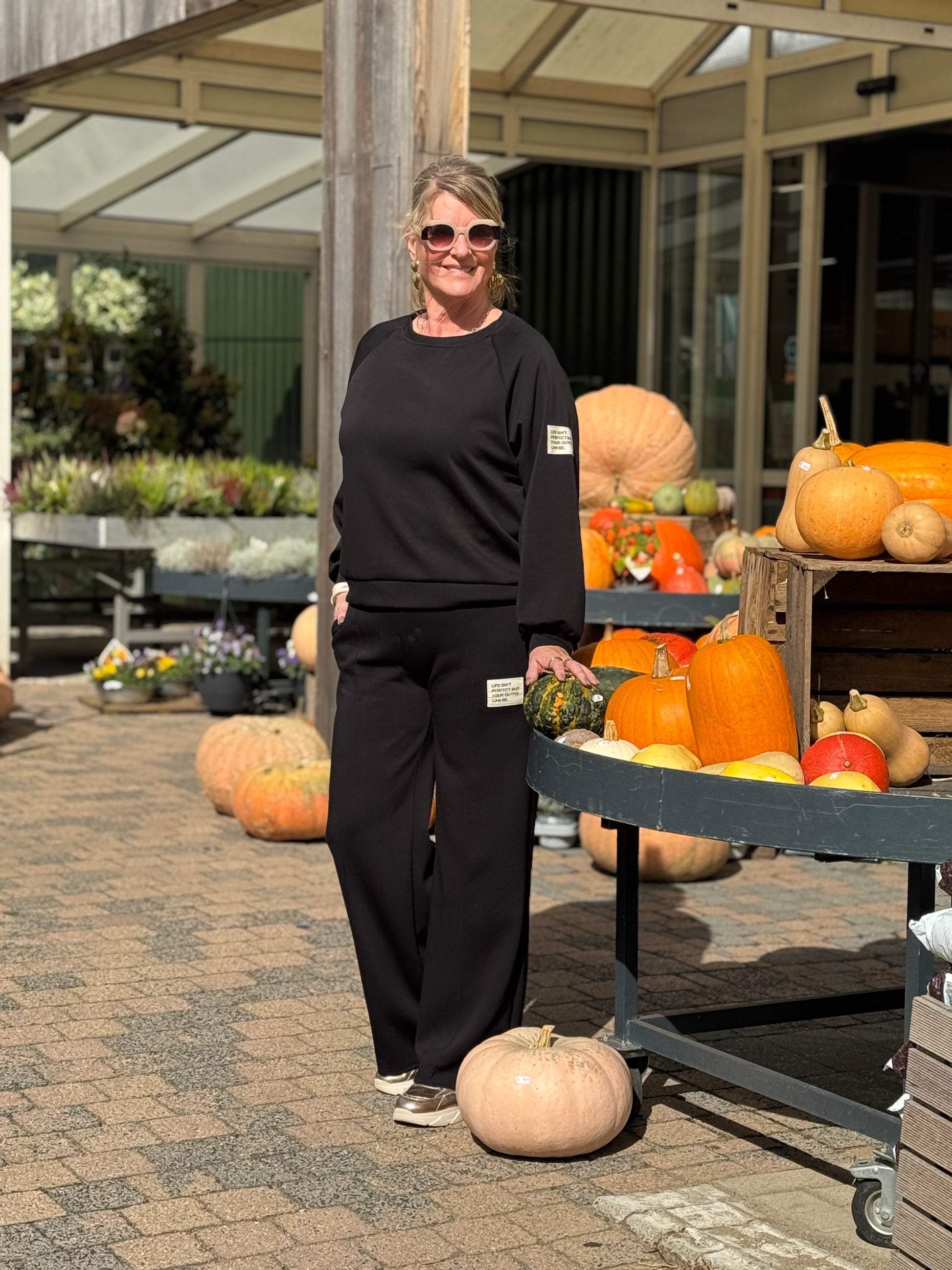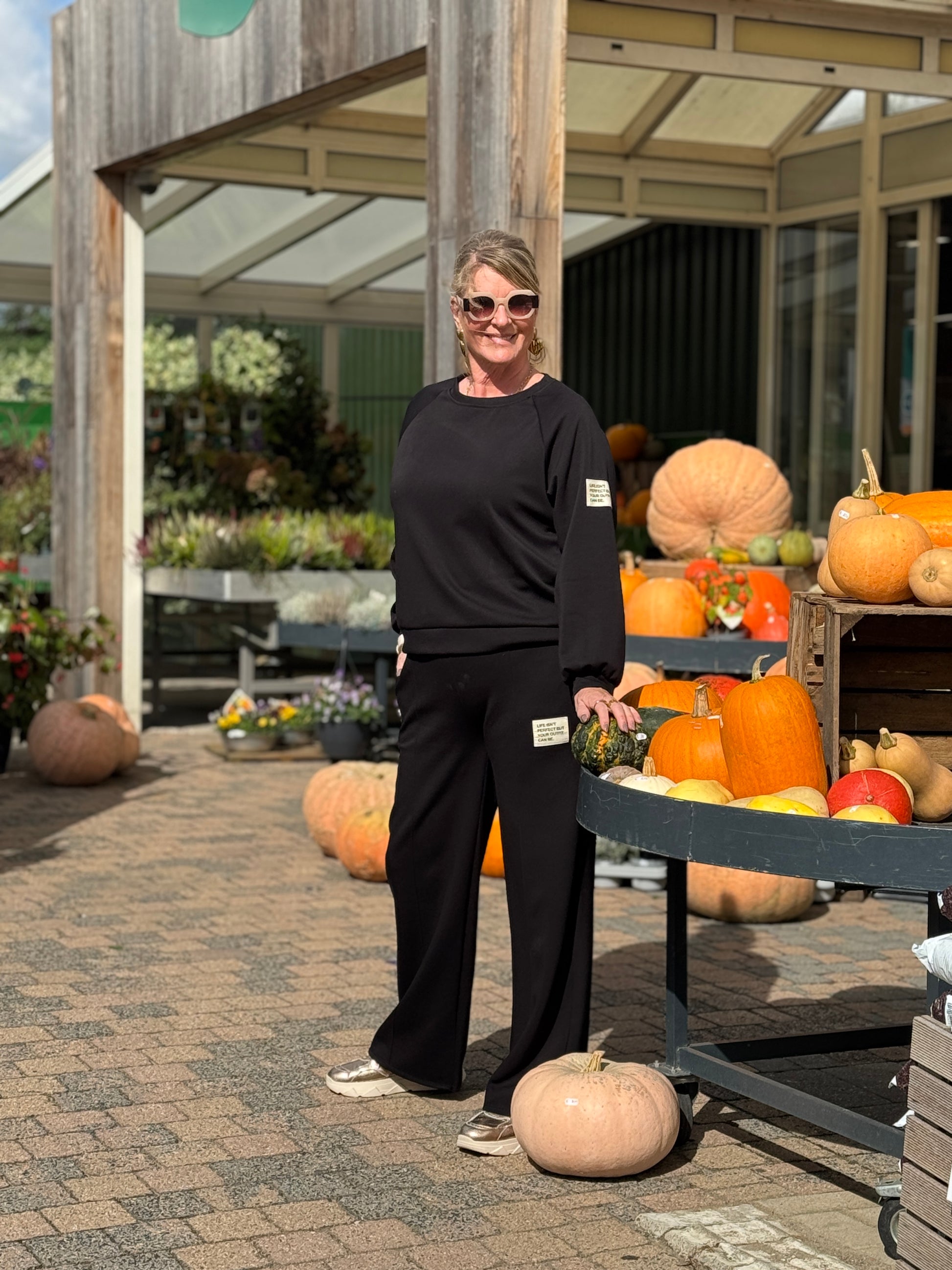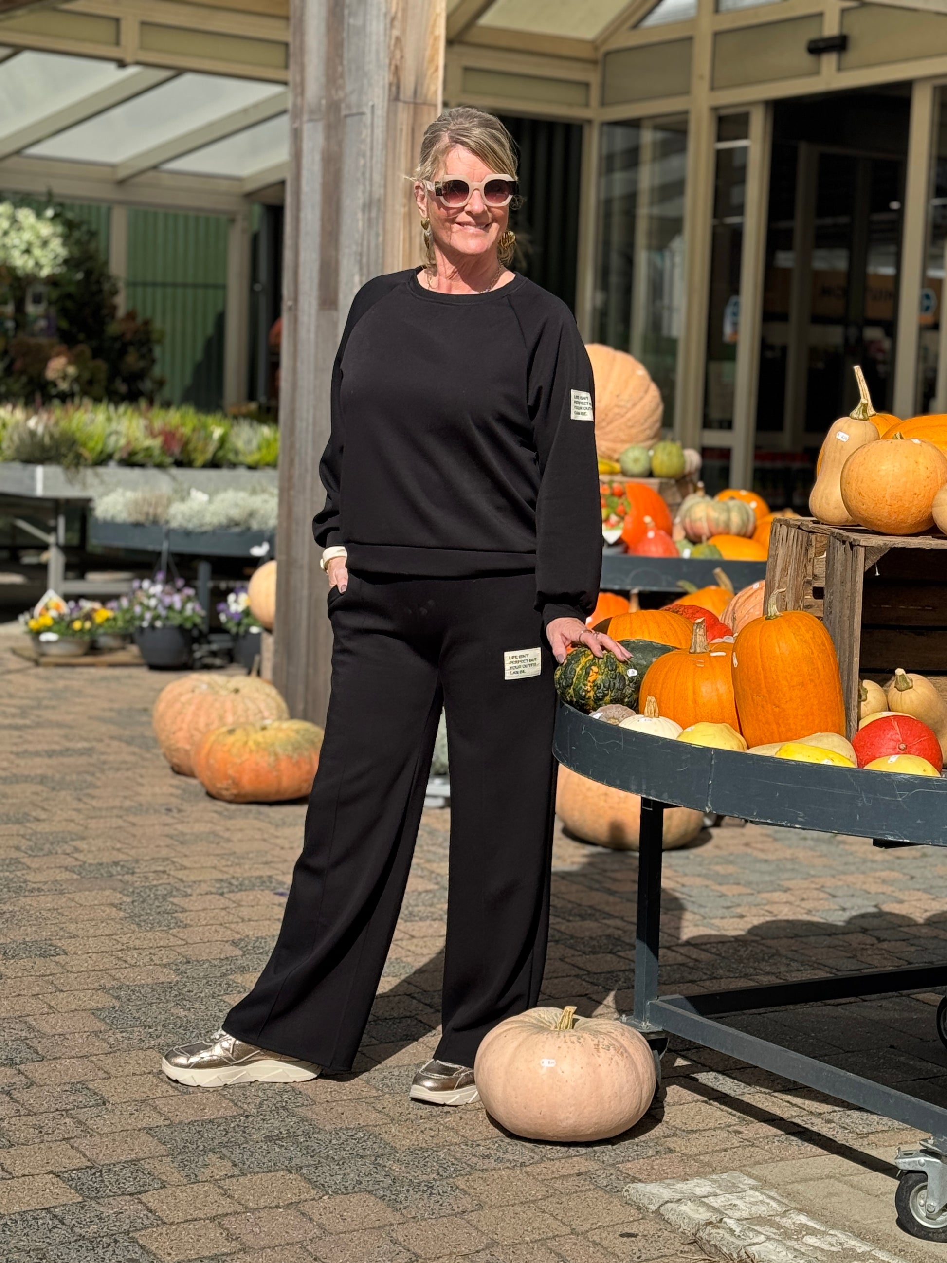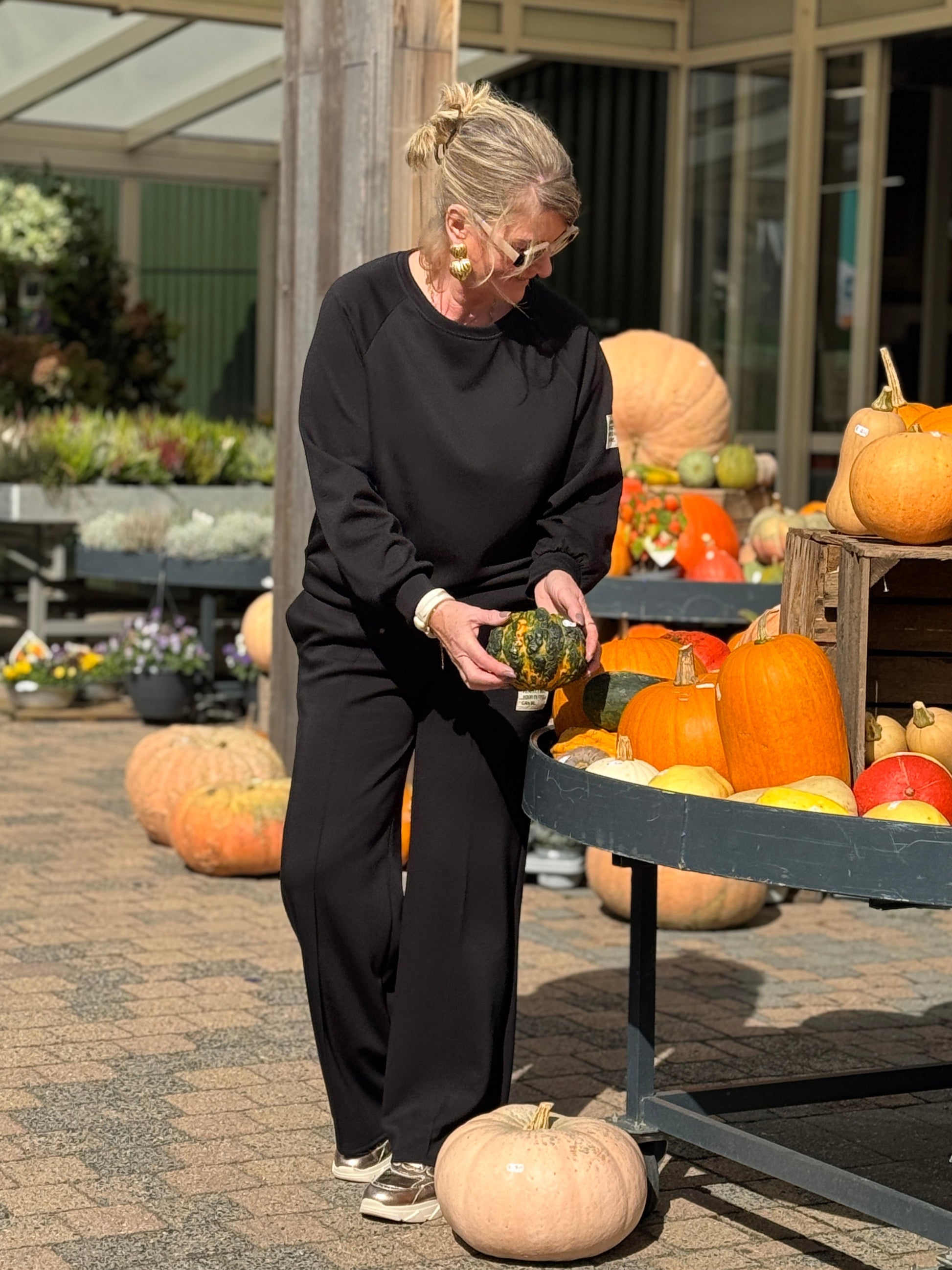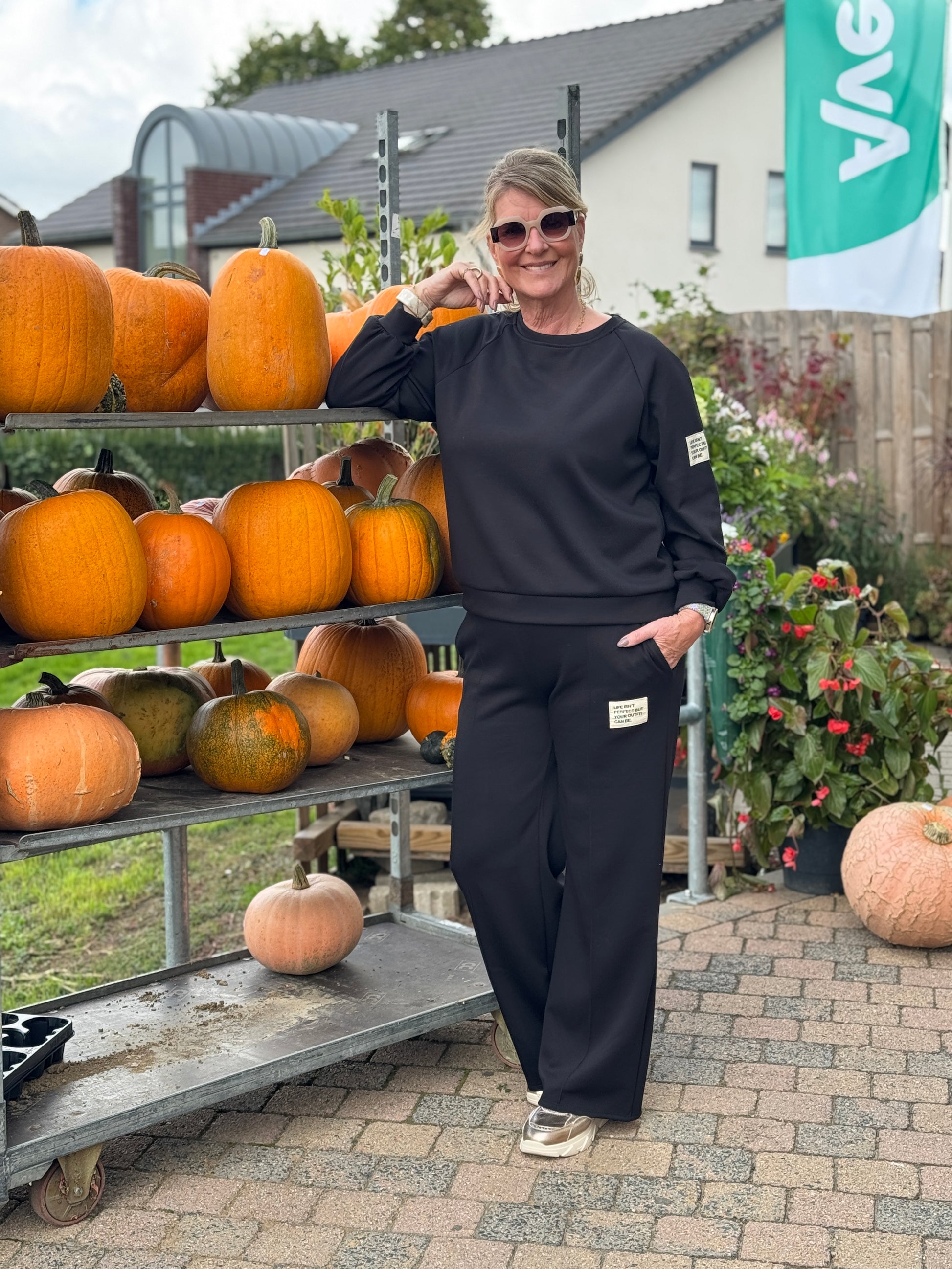 Heerlijk cosy pak met leuke details. De trui is lekker oversized en de broek is wide leg.