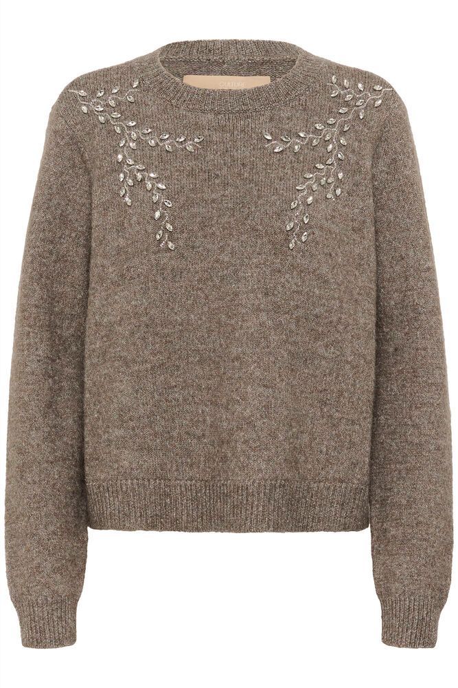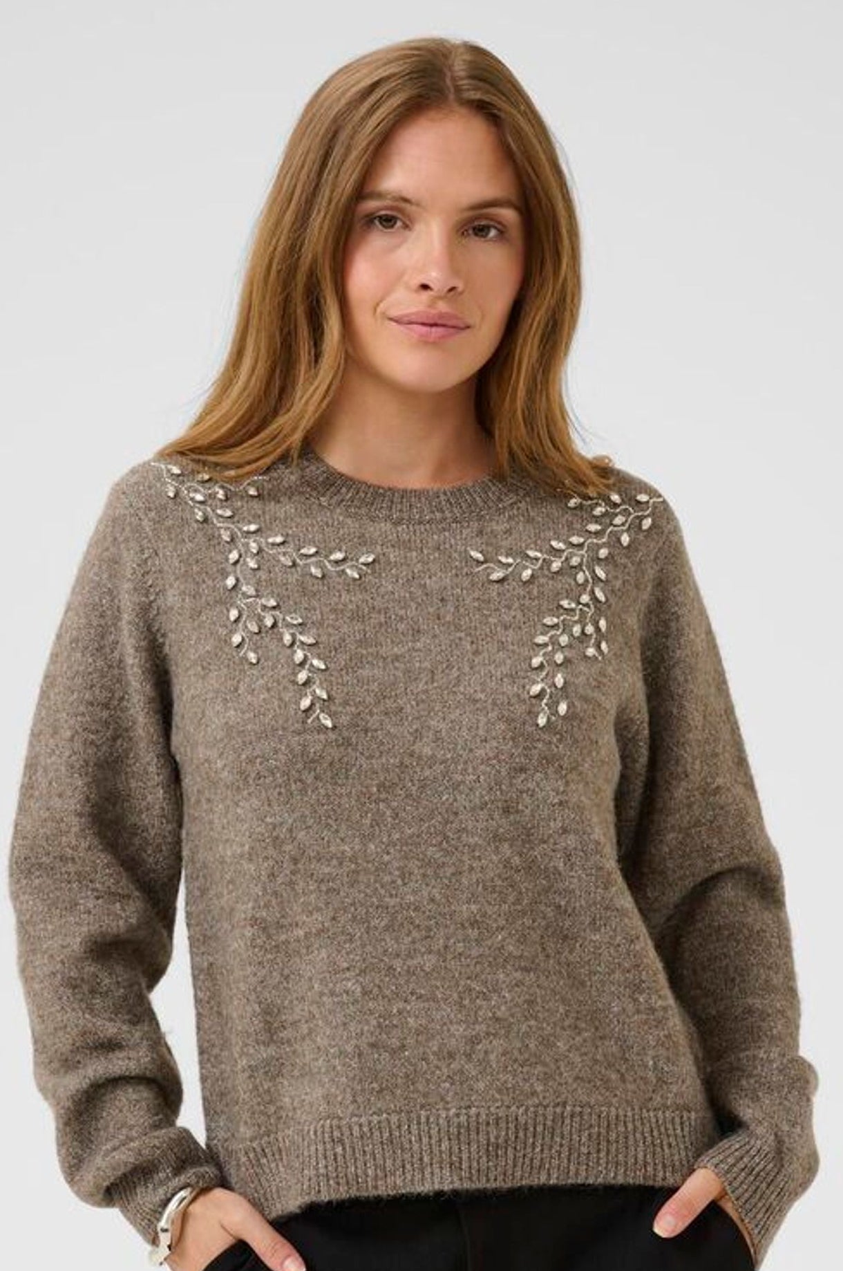 Geweldige trui met ronde hals en steentjes aan de voorkant.