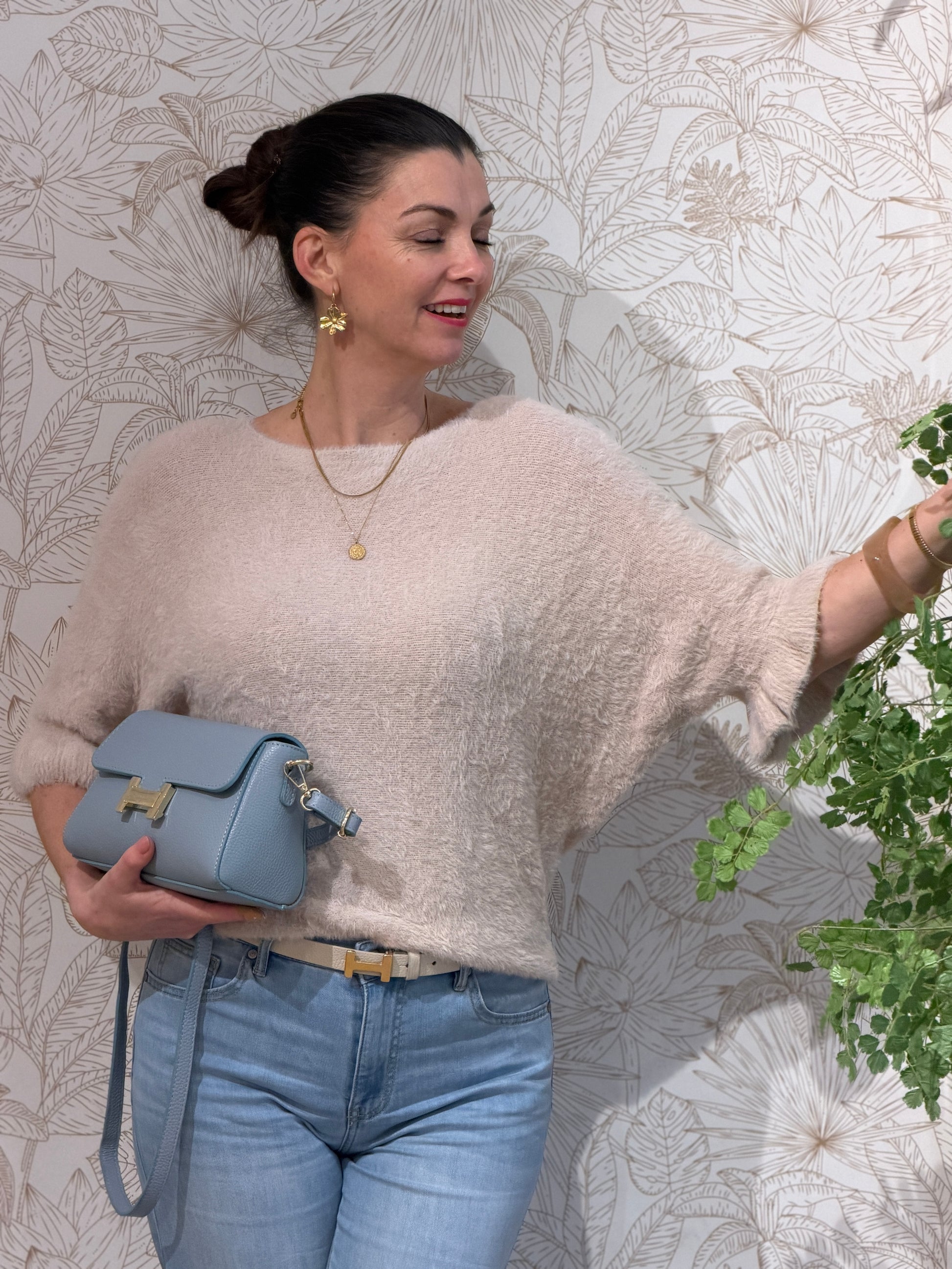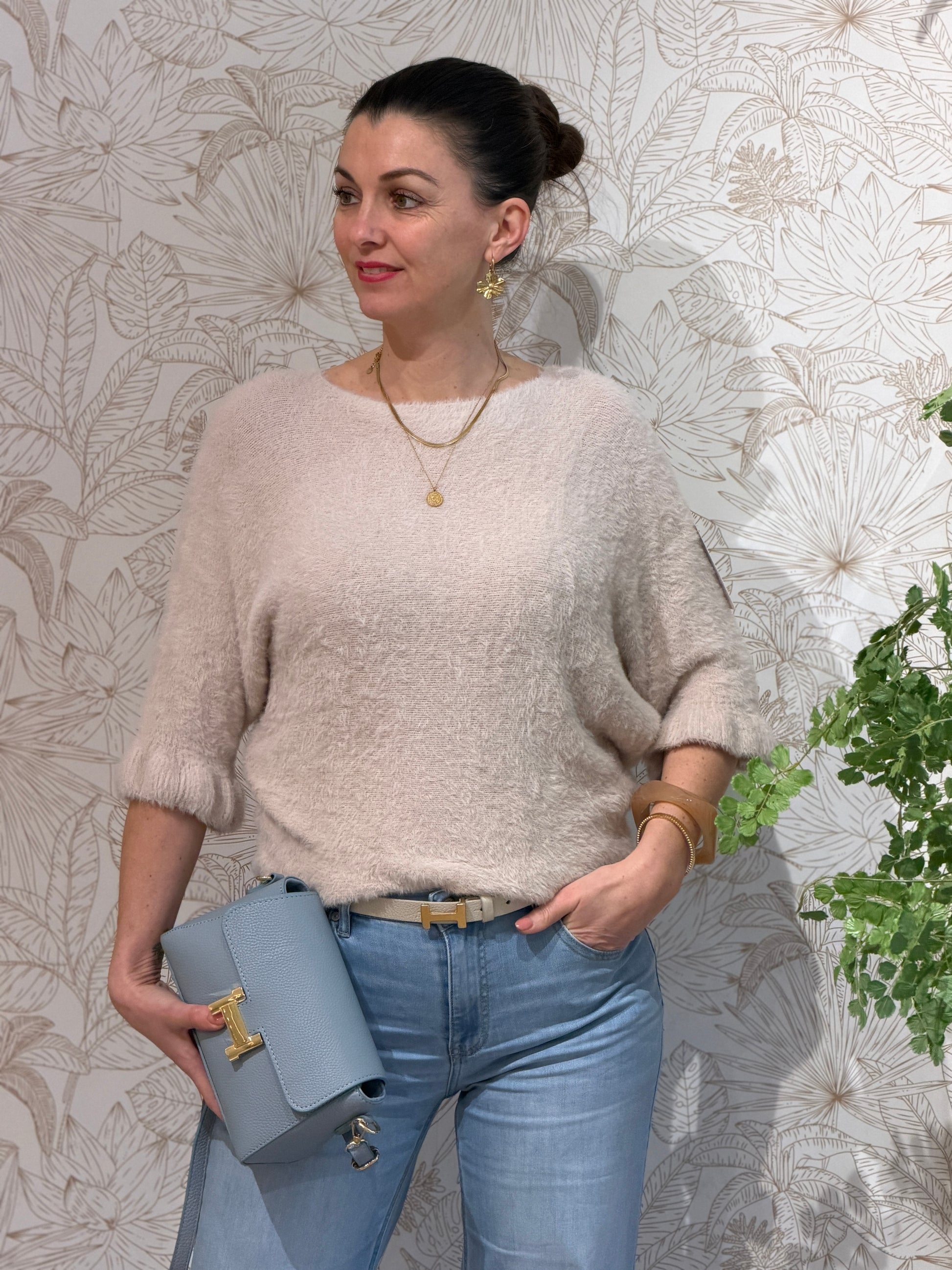Een super zachte, warme trui met heel veel stretch die meteen dat knusse winter gevoel geeft. Leuke mouwen met ruffle.