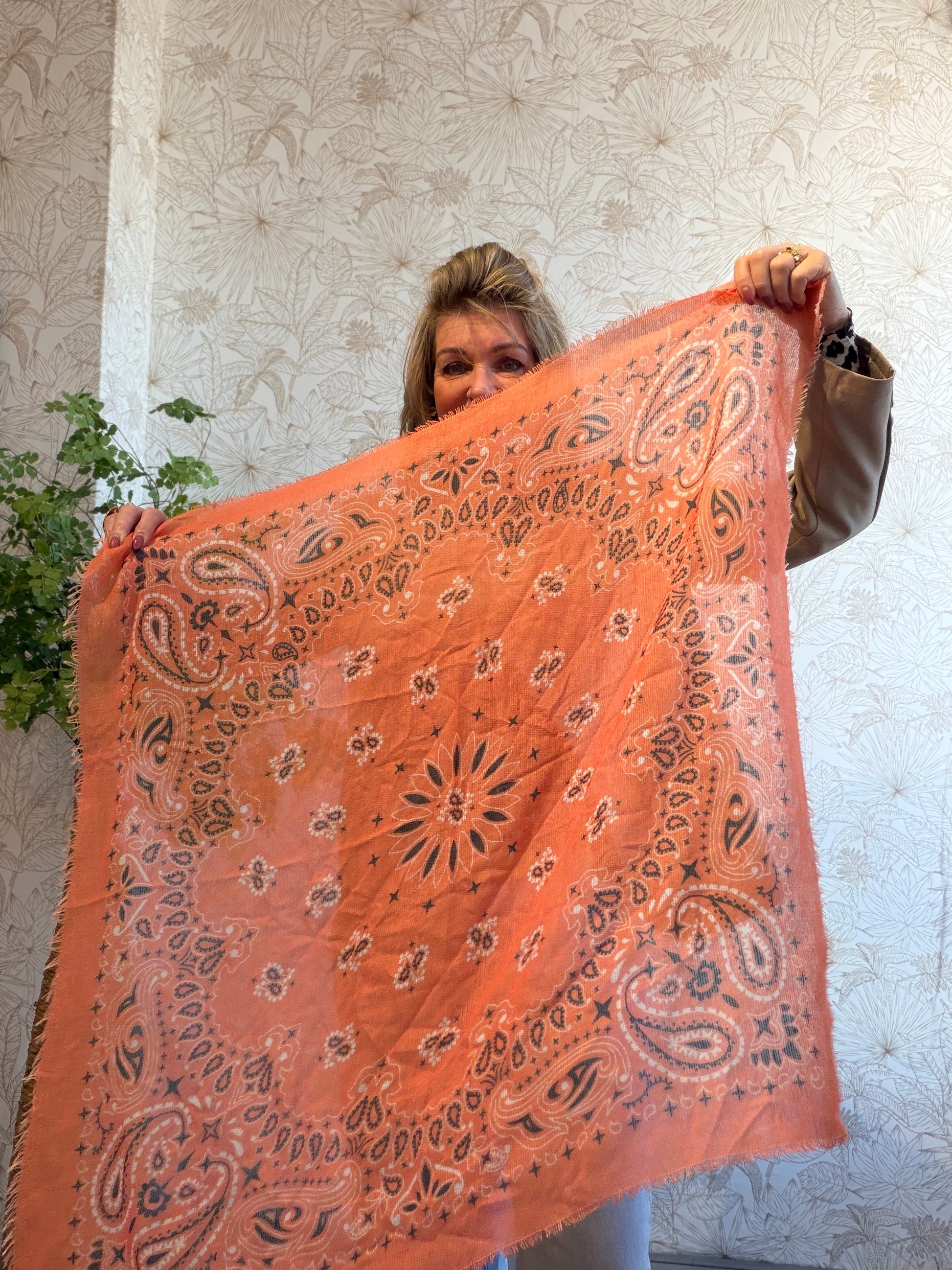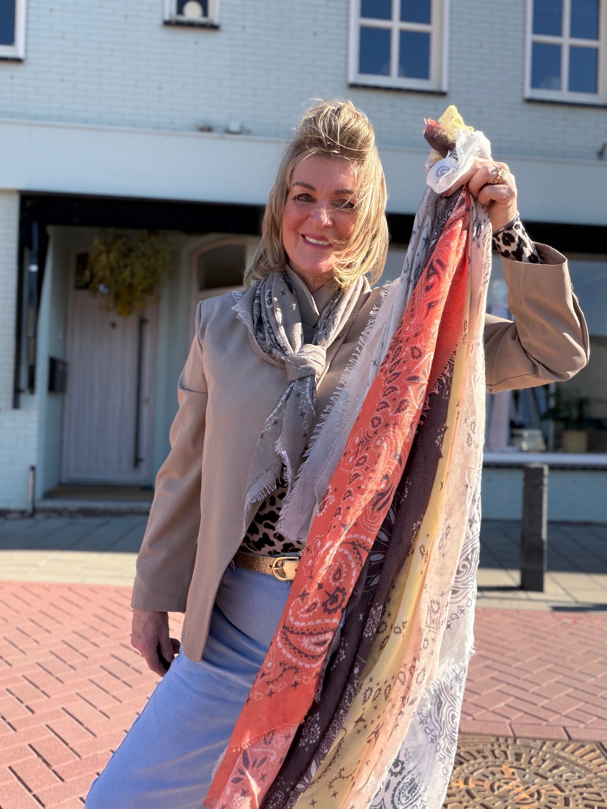 Super trendy sjaal look a like op verschillende manieren te dragen.
