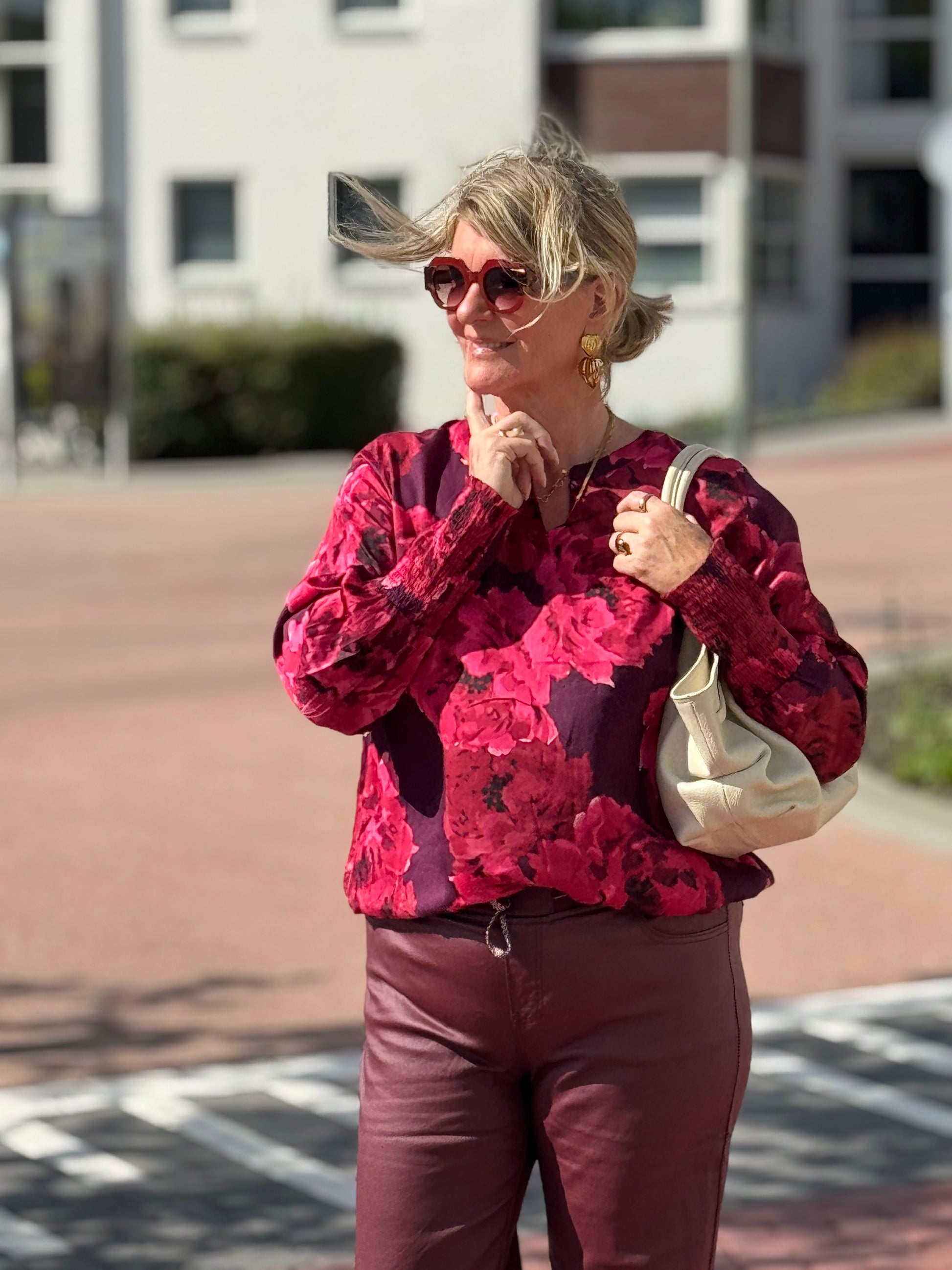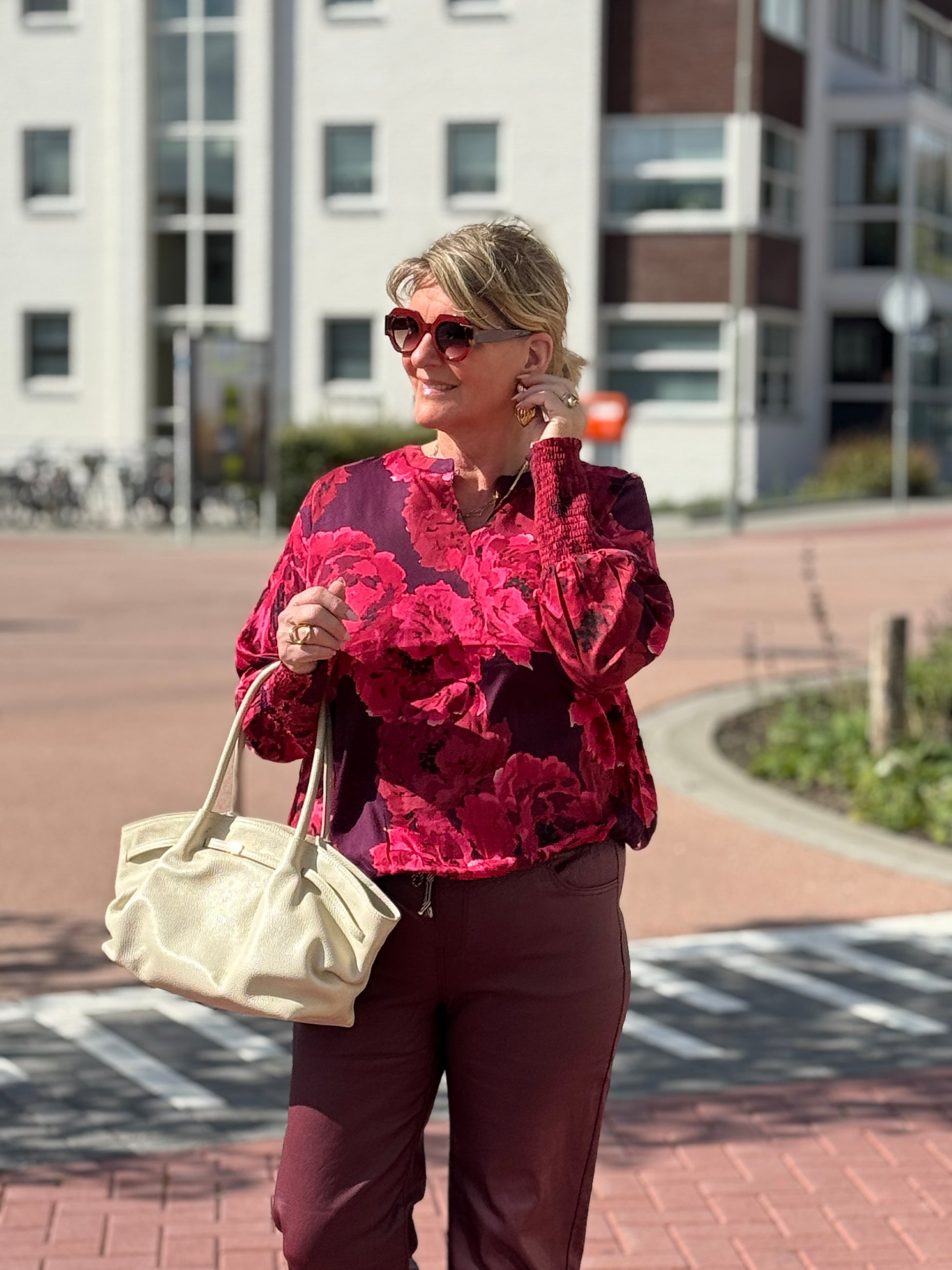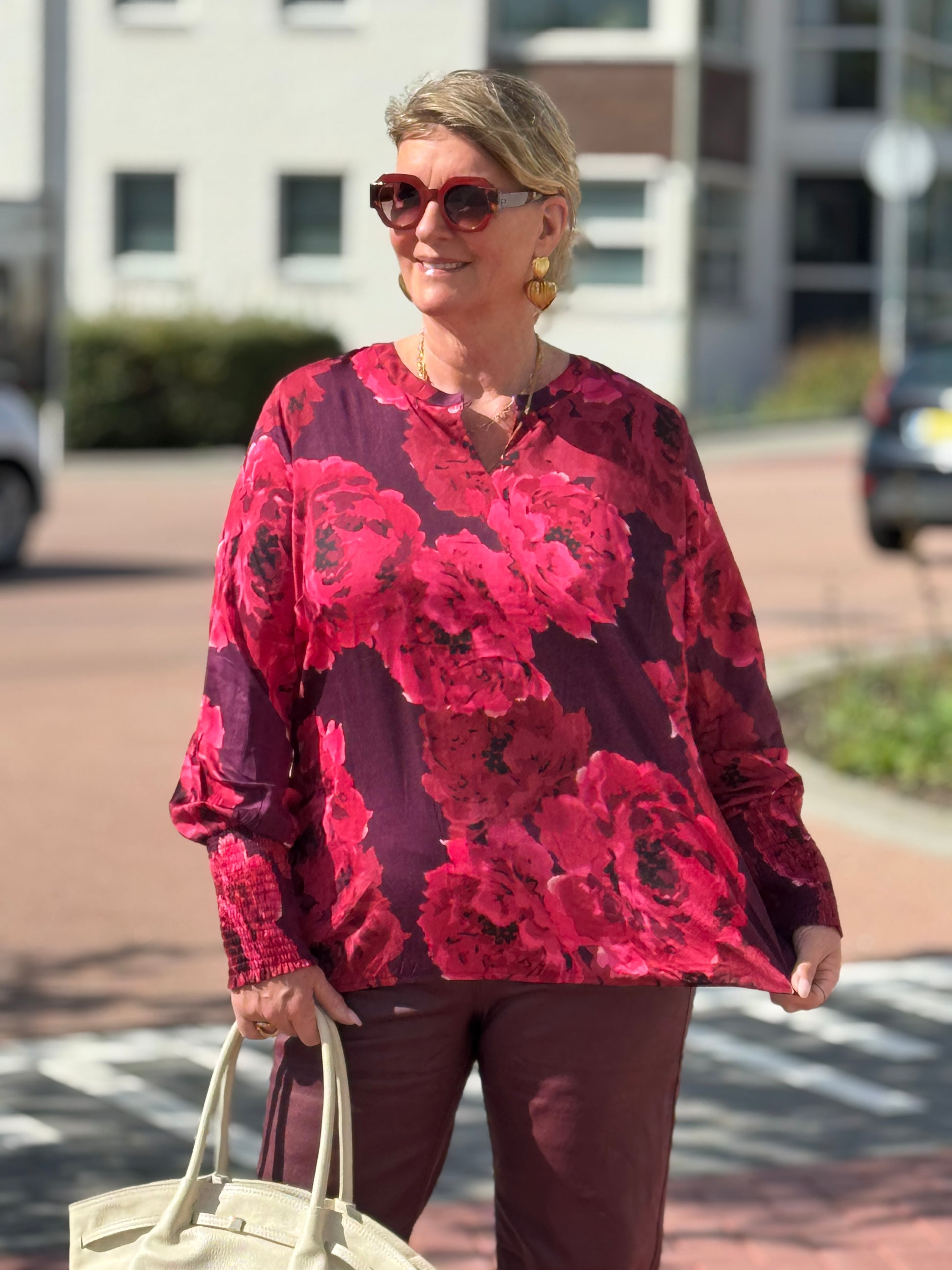 Prachtige print blouse van zhenzi met ronde Hals. Balon mouw en elastieke manchet. Elastiek aan de onderkant.