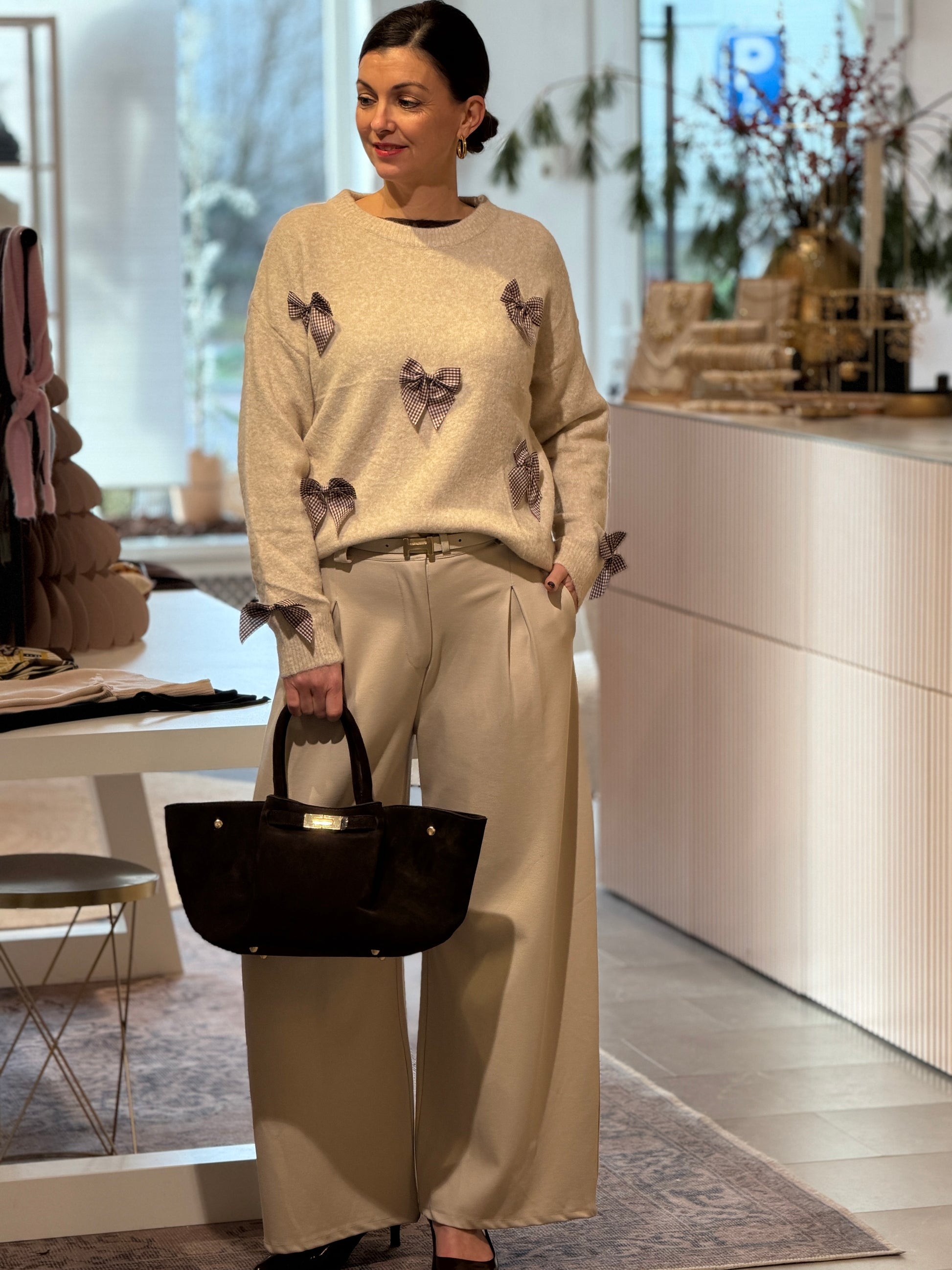 Wat schattig deze trui met details van strikken aan de voorzijde.